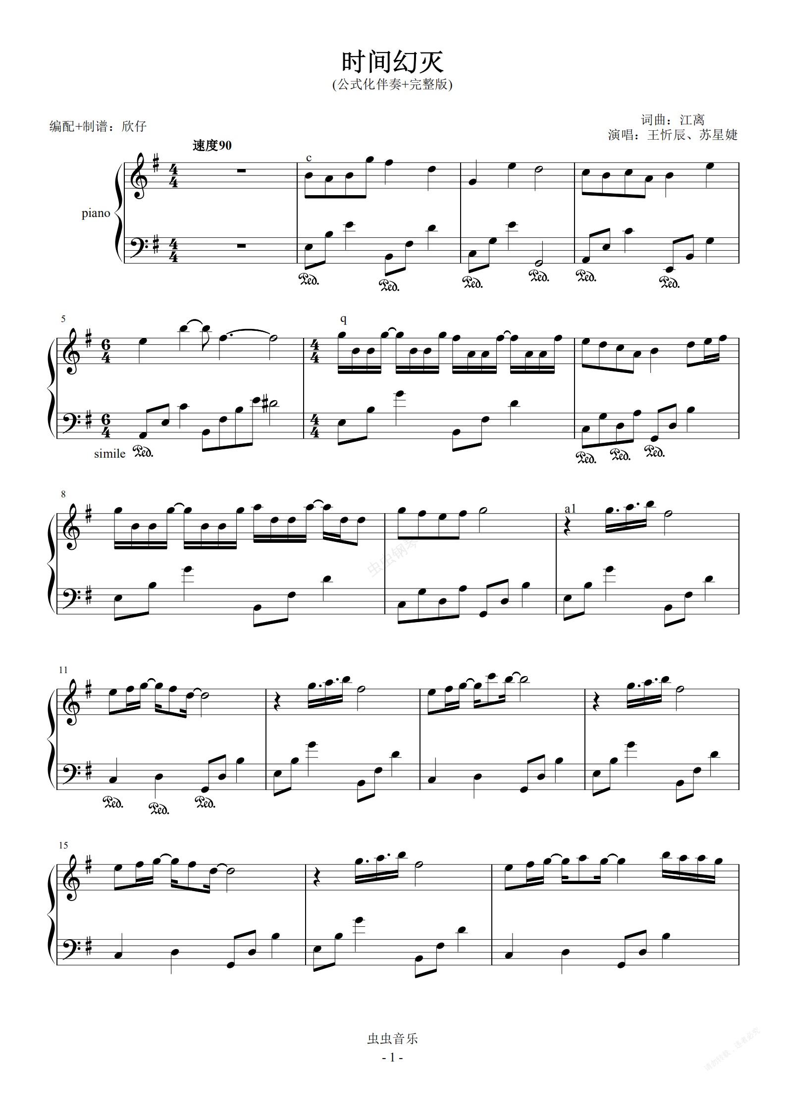 钢琴谱:王忻辰&苏星婕-G《时间幻灭》(公式化伴奏+完整版)