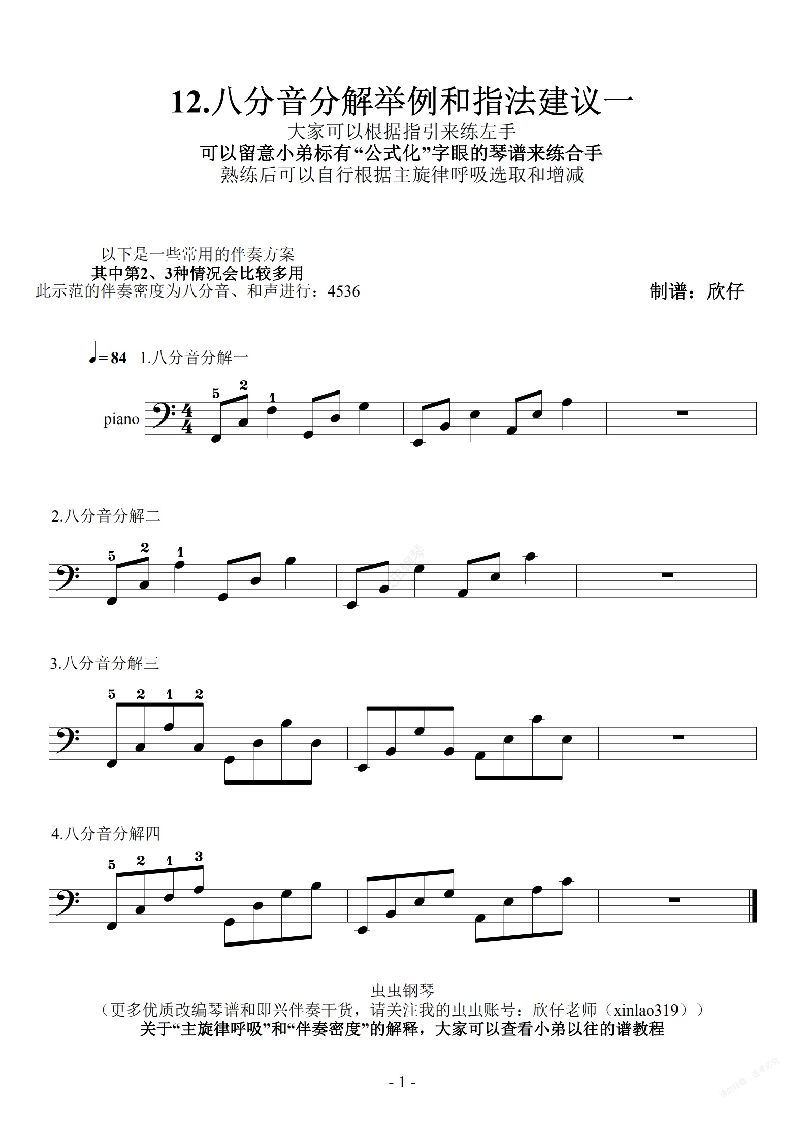 钢琴谱:免费教程-八分音分解的一些情况和指法建议一
