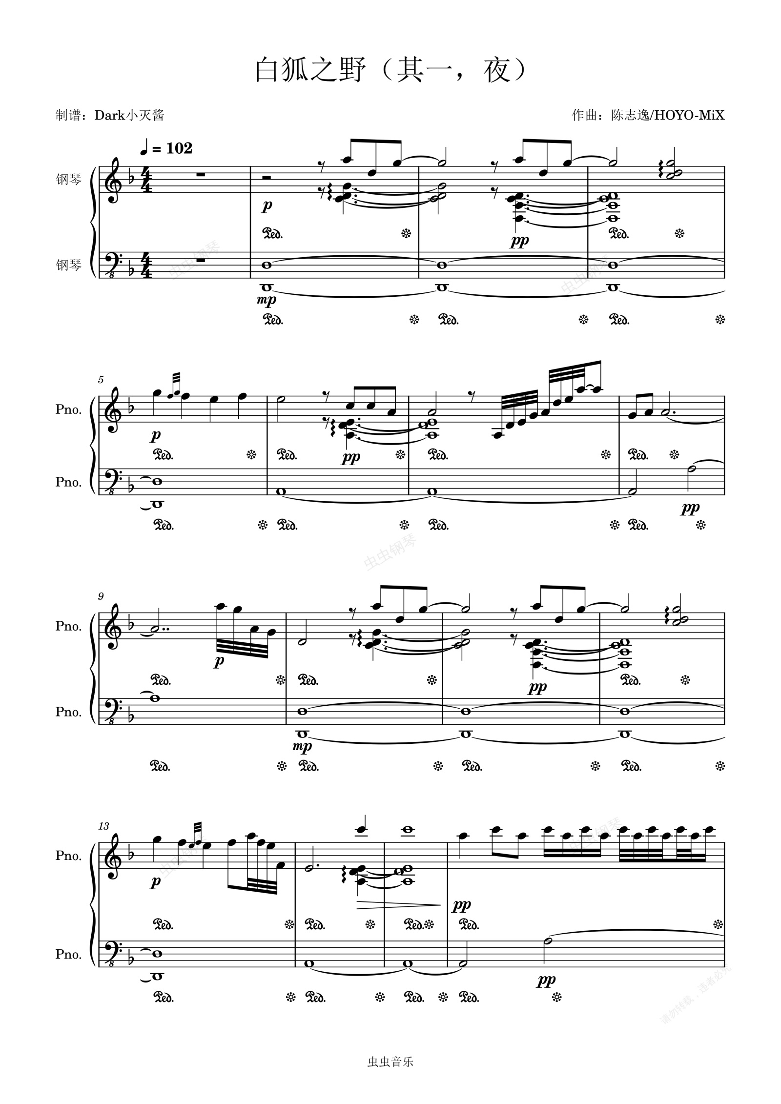 钢琴谱:白狐之野(其一,夜)