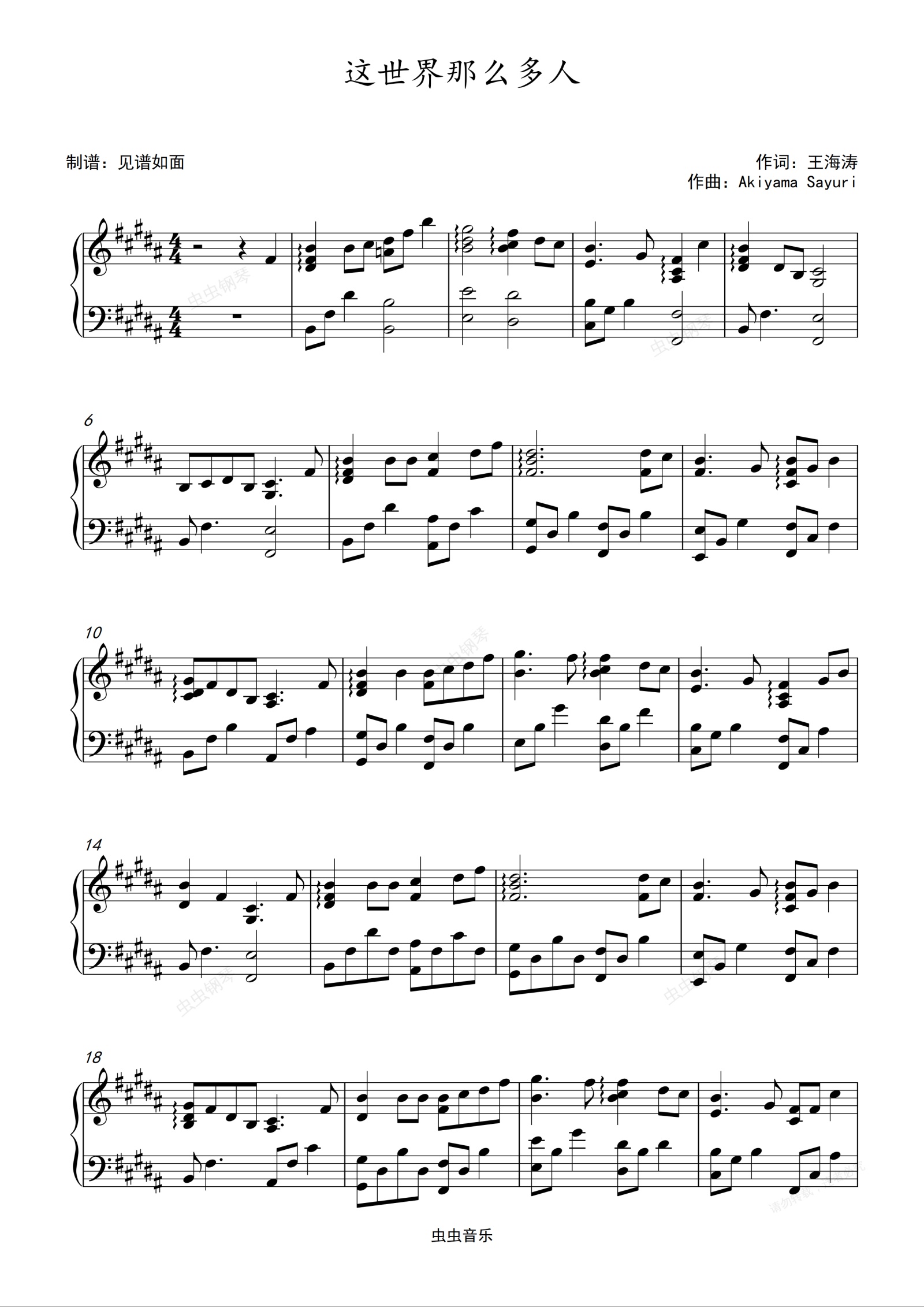 钢琴谱:这世界那么多人—莫文蔚【原调进阶版】