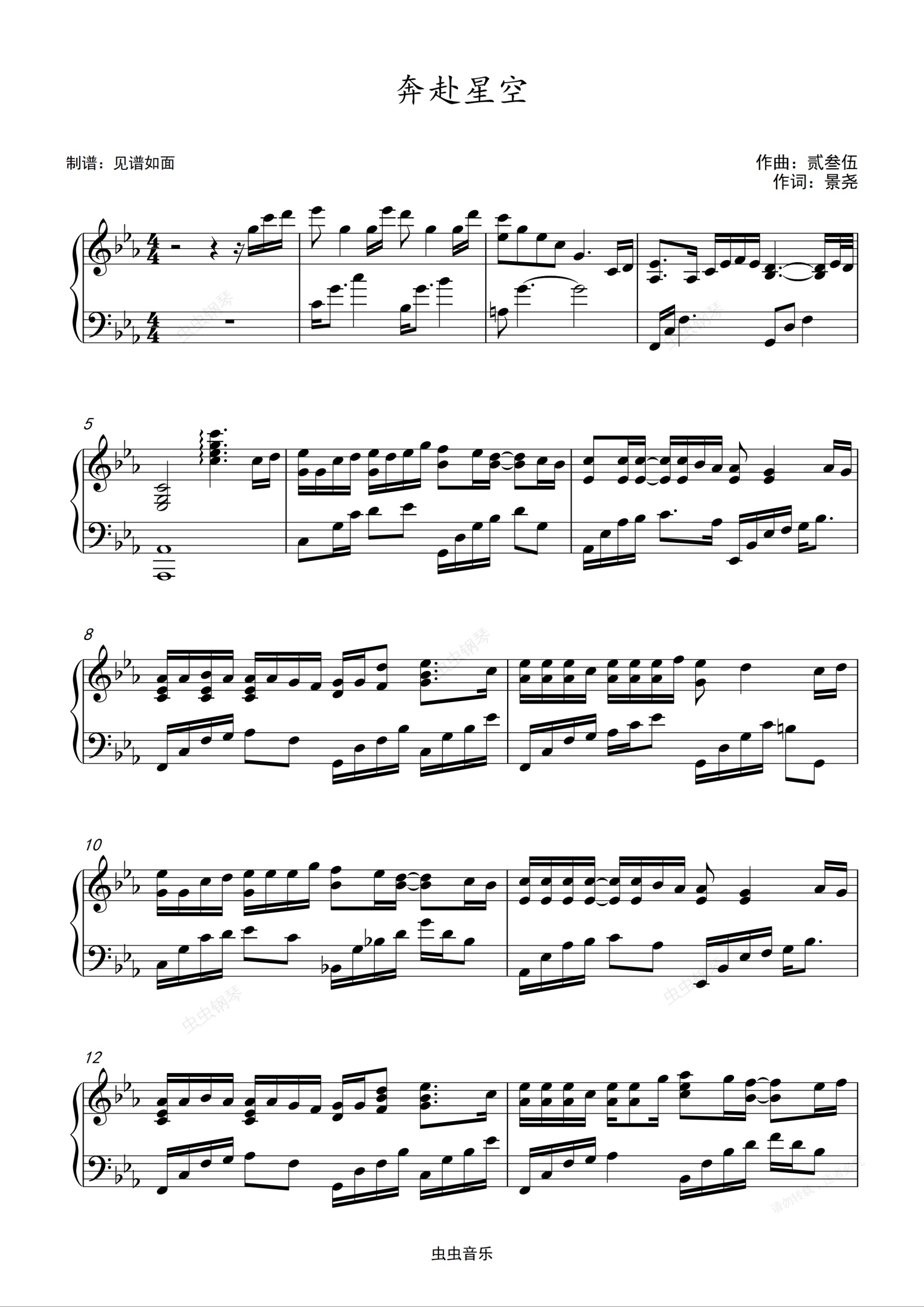 钢琴谱:奔赴星空—尹昔眠【进阶版】