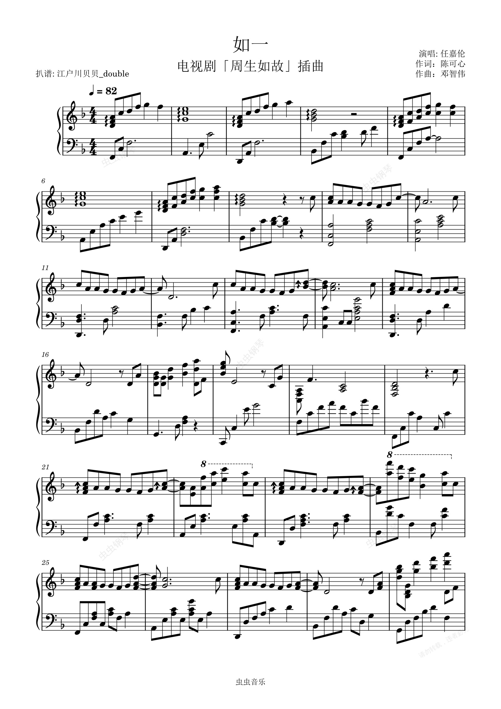 钢琴谱:【周生如故】插曲《如一》(任嘉伦)