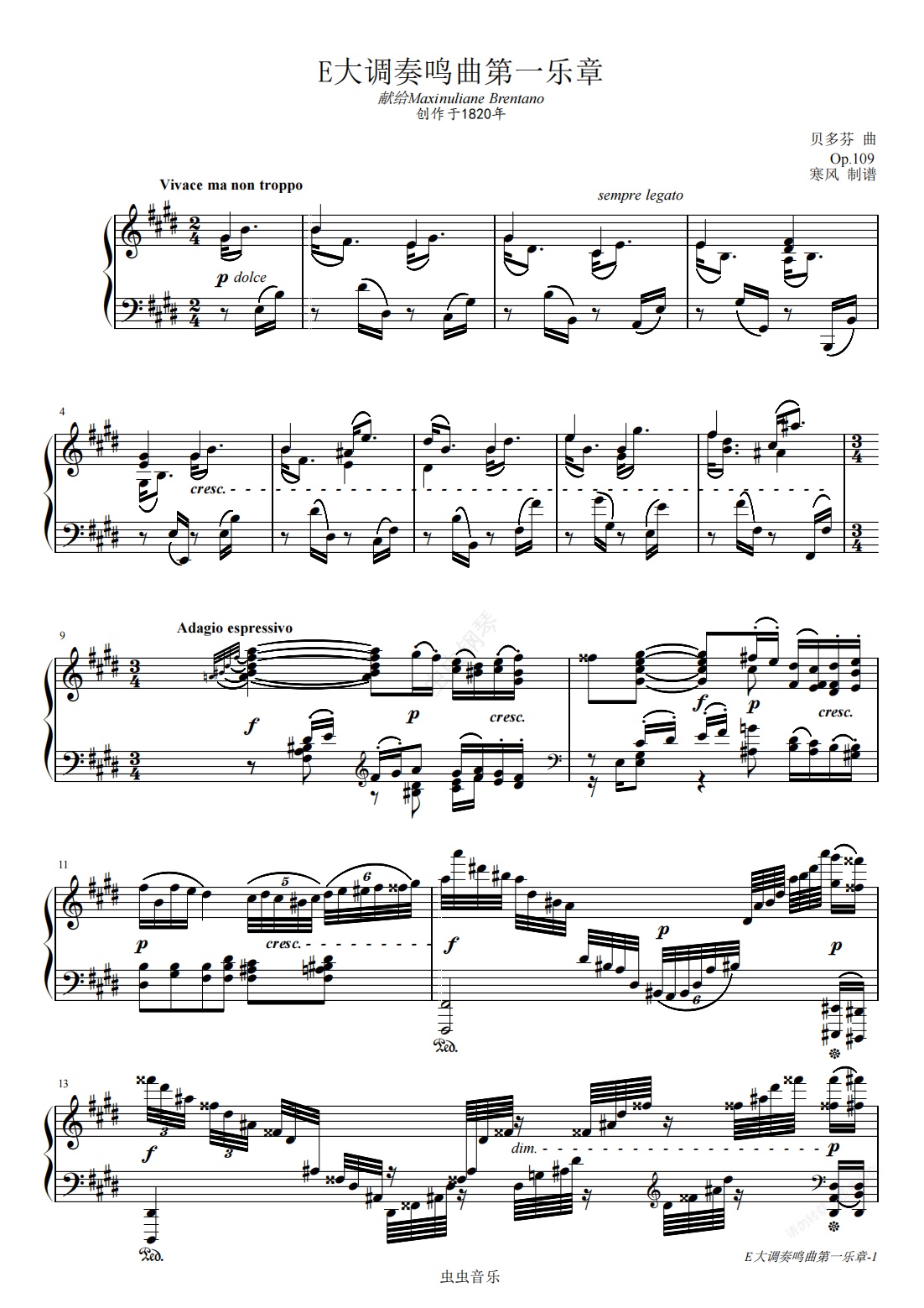 钢琴谱:贝多芬-E大调奏鸣曲第一乐章