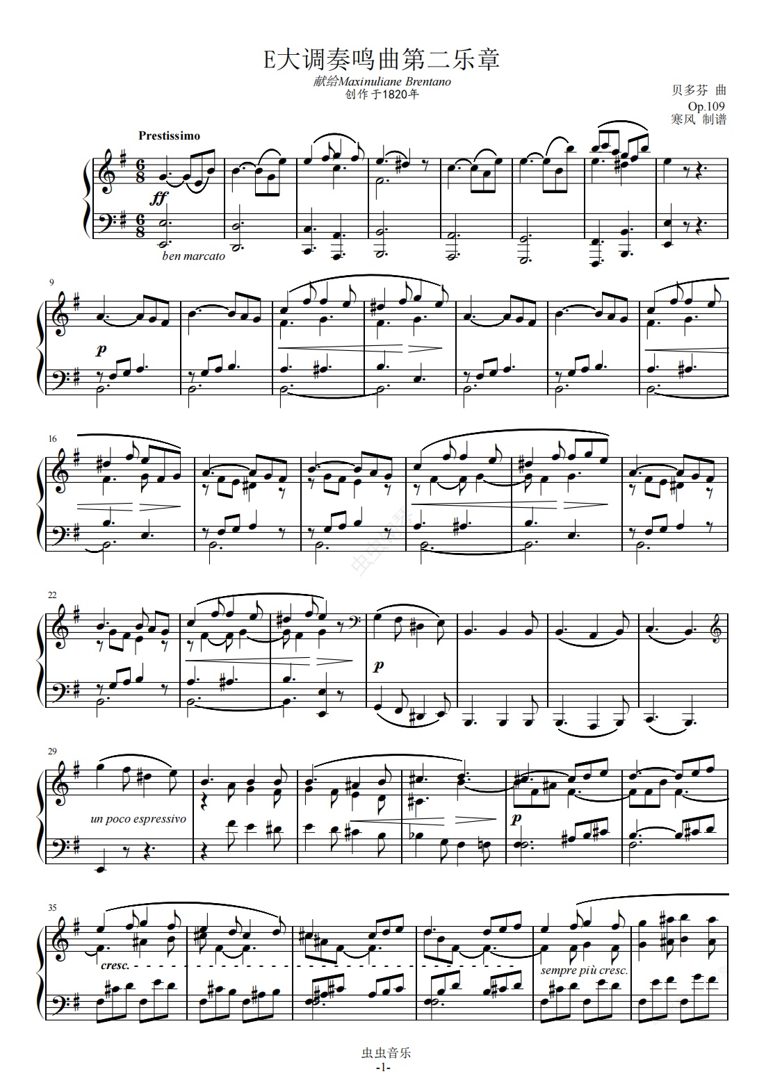 钢琴谱:贝多芬-E大调奏鸣曲第二乐章