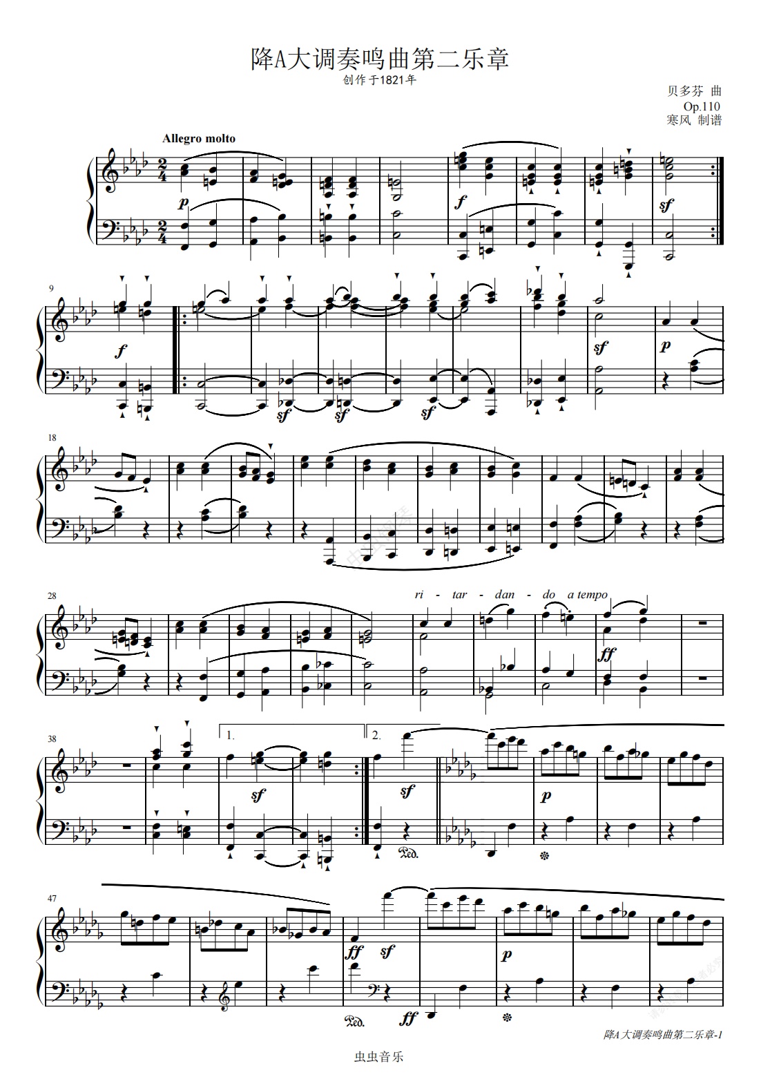 钢琴谱:贝多芬-降A大调奏鸣曲第二乐章