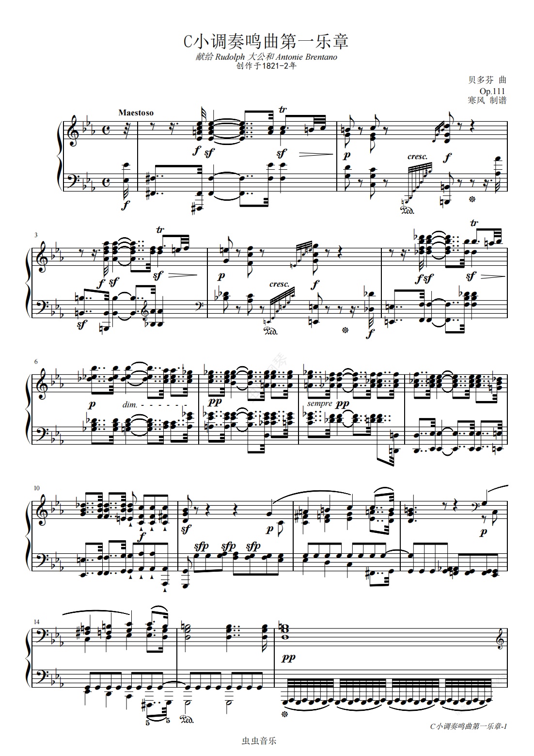 钢琴谱:贝多芬-C小调奏鸣曲第一乐章