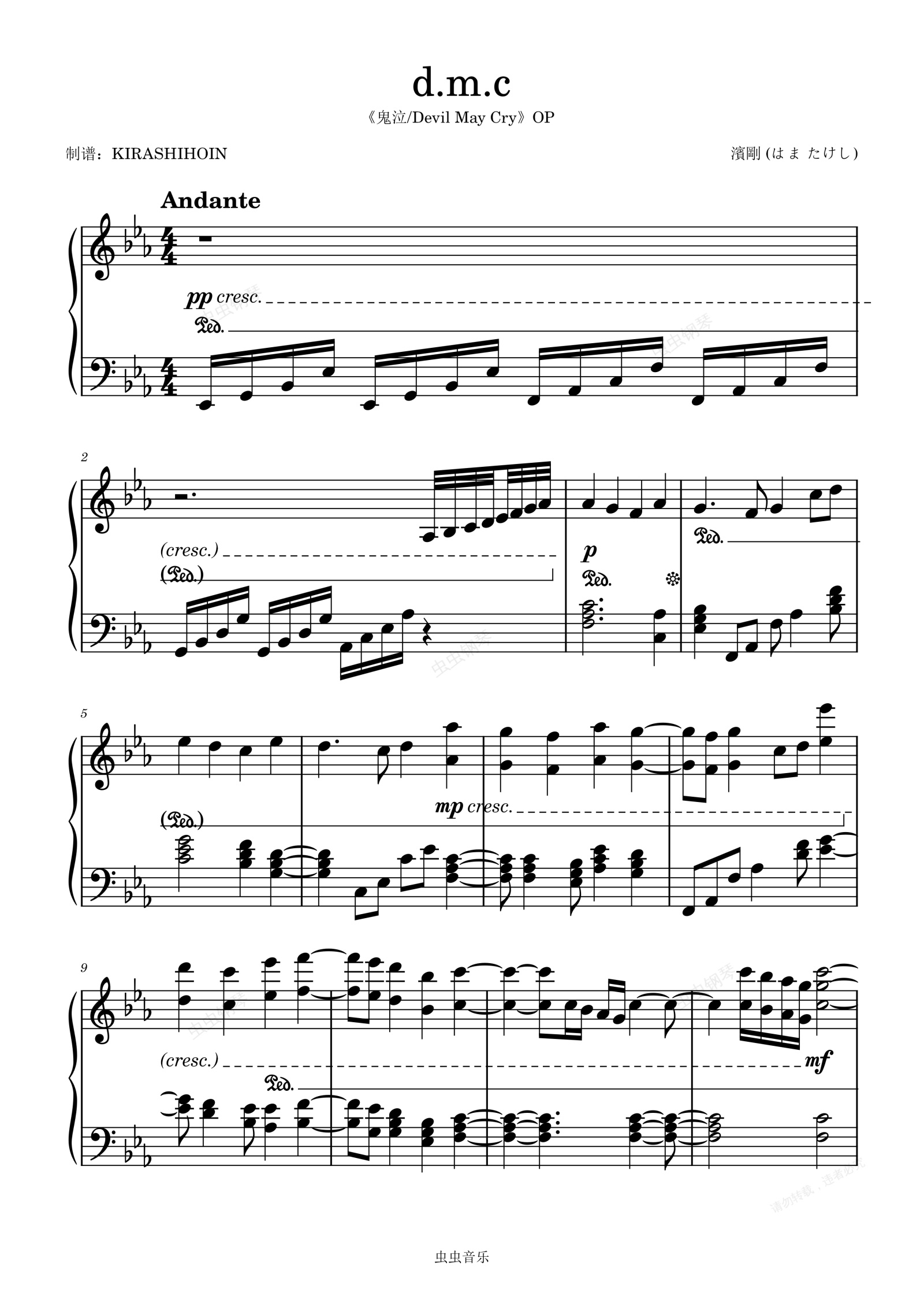 钢琴谱:d.m.c(《鬼泣/Devil May Cry》OP)- 濱剛
