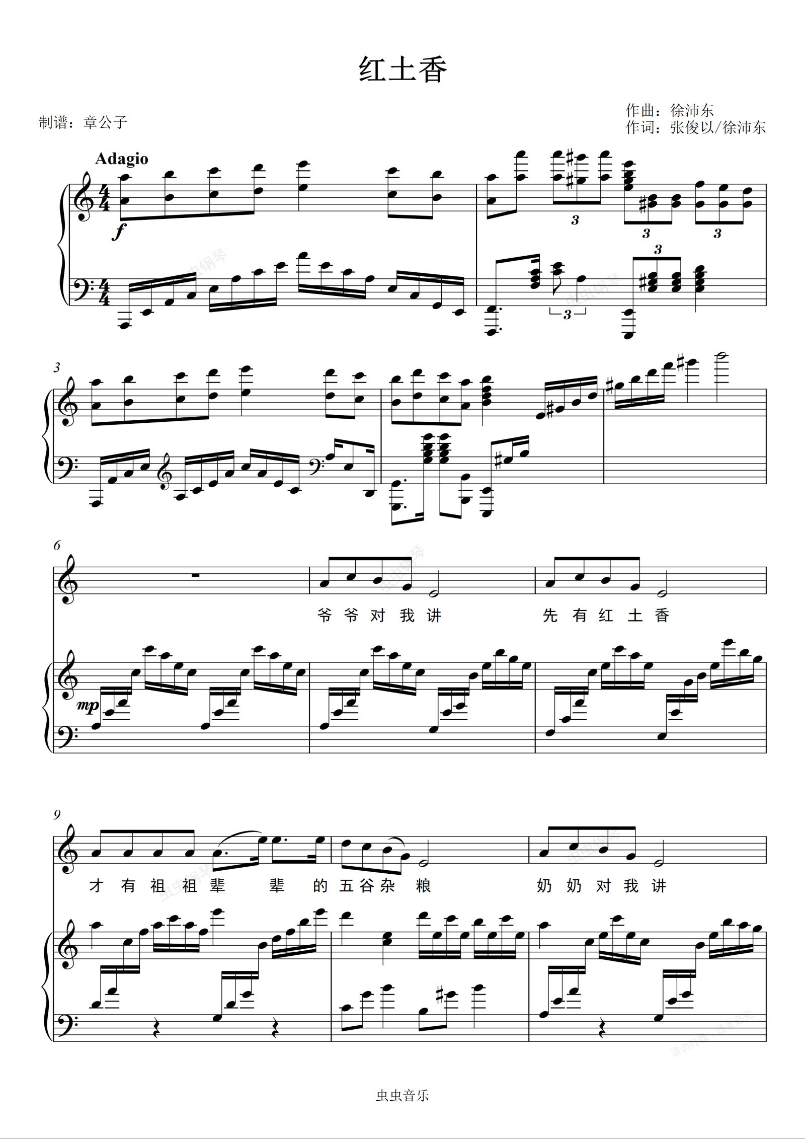钢琴谱:《红土香》- 王丽达 弹唱(伴奏)谱