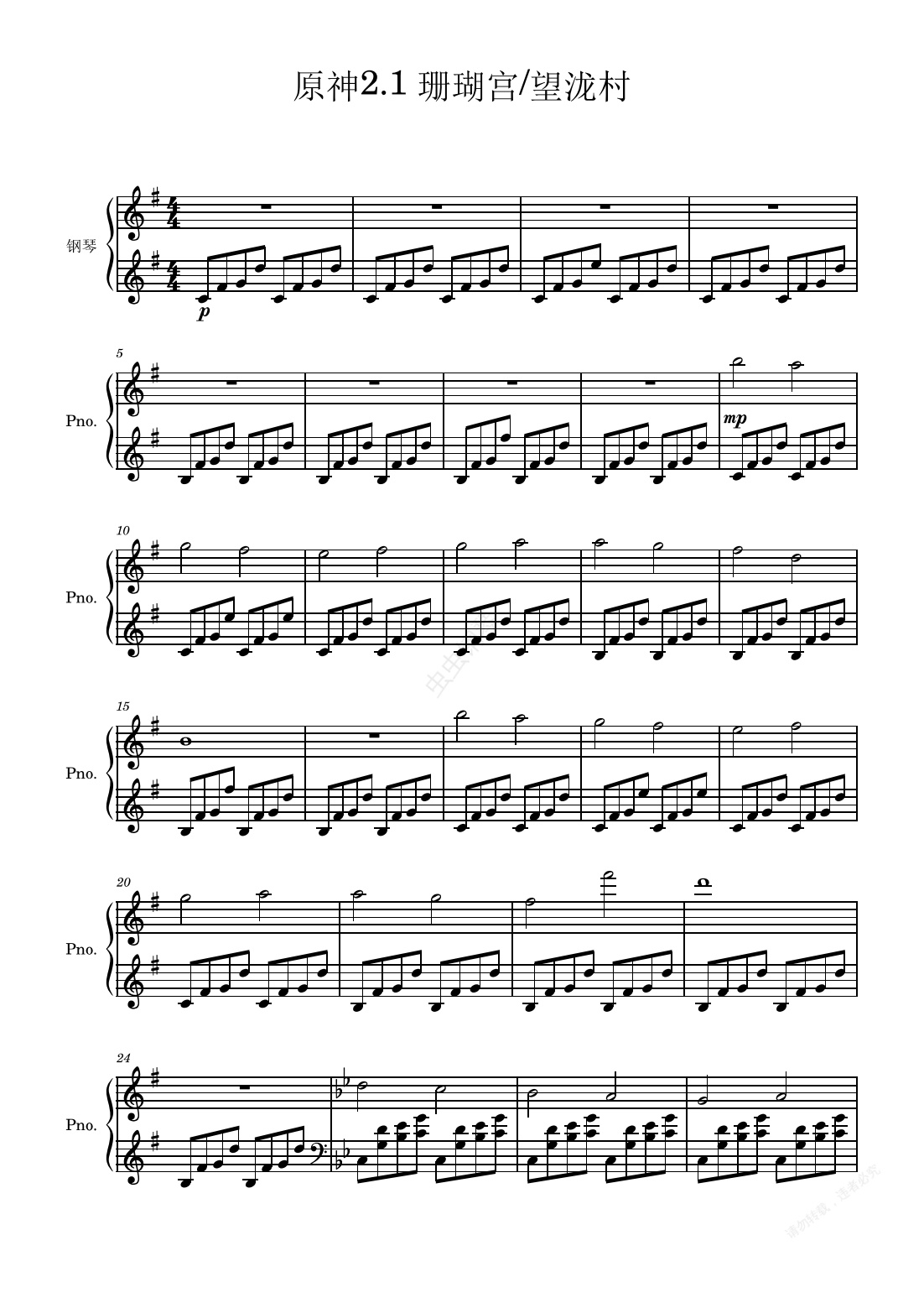 钢琴谱:原神2.1BGM 珊瑚宫/望泷村(钢琴独奏)—永远生