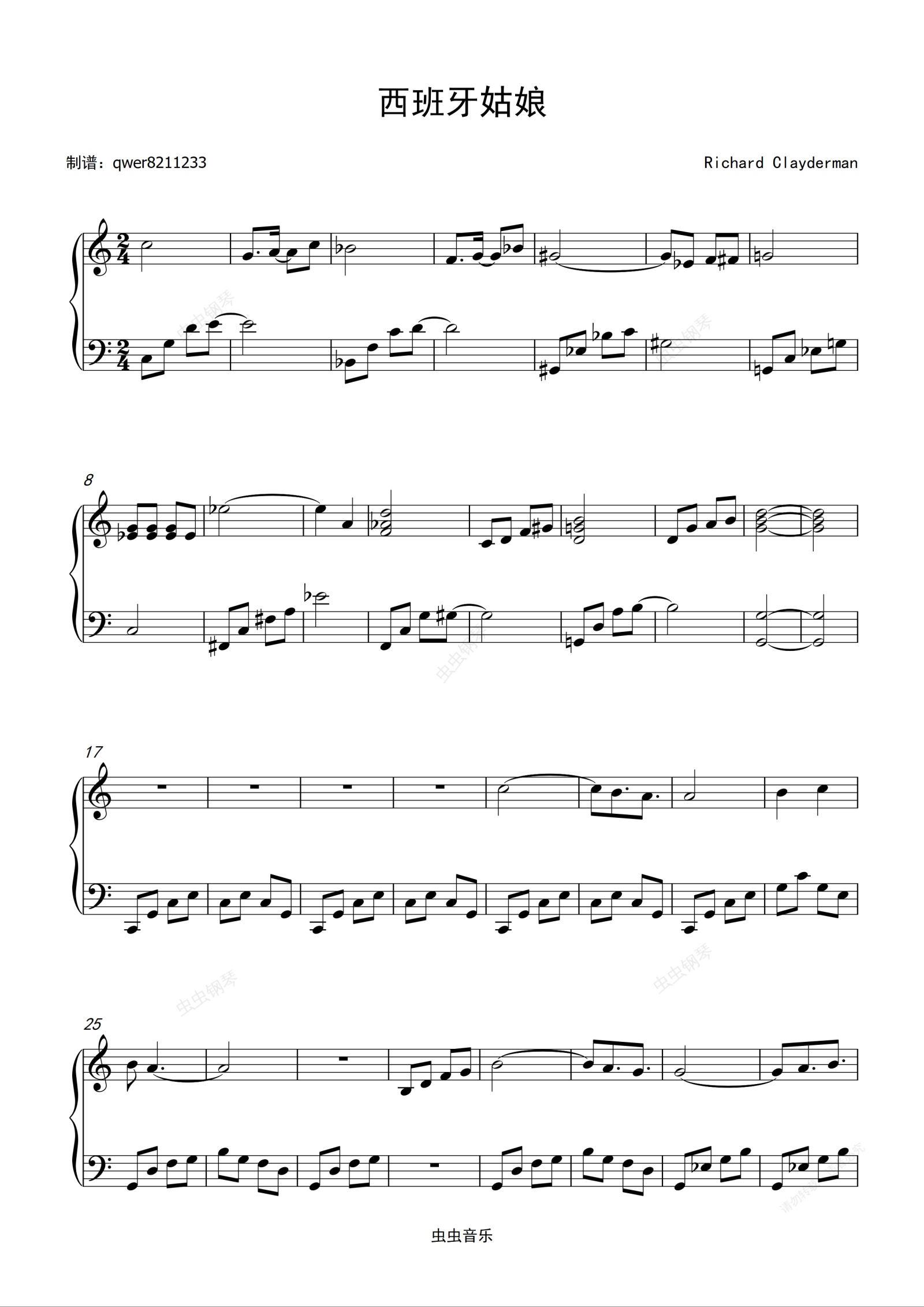 钢琴谱:西班牙姑娘