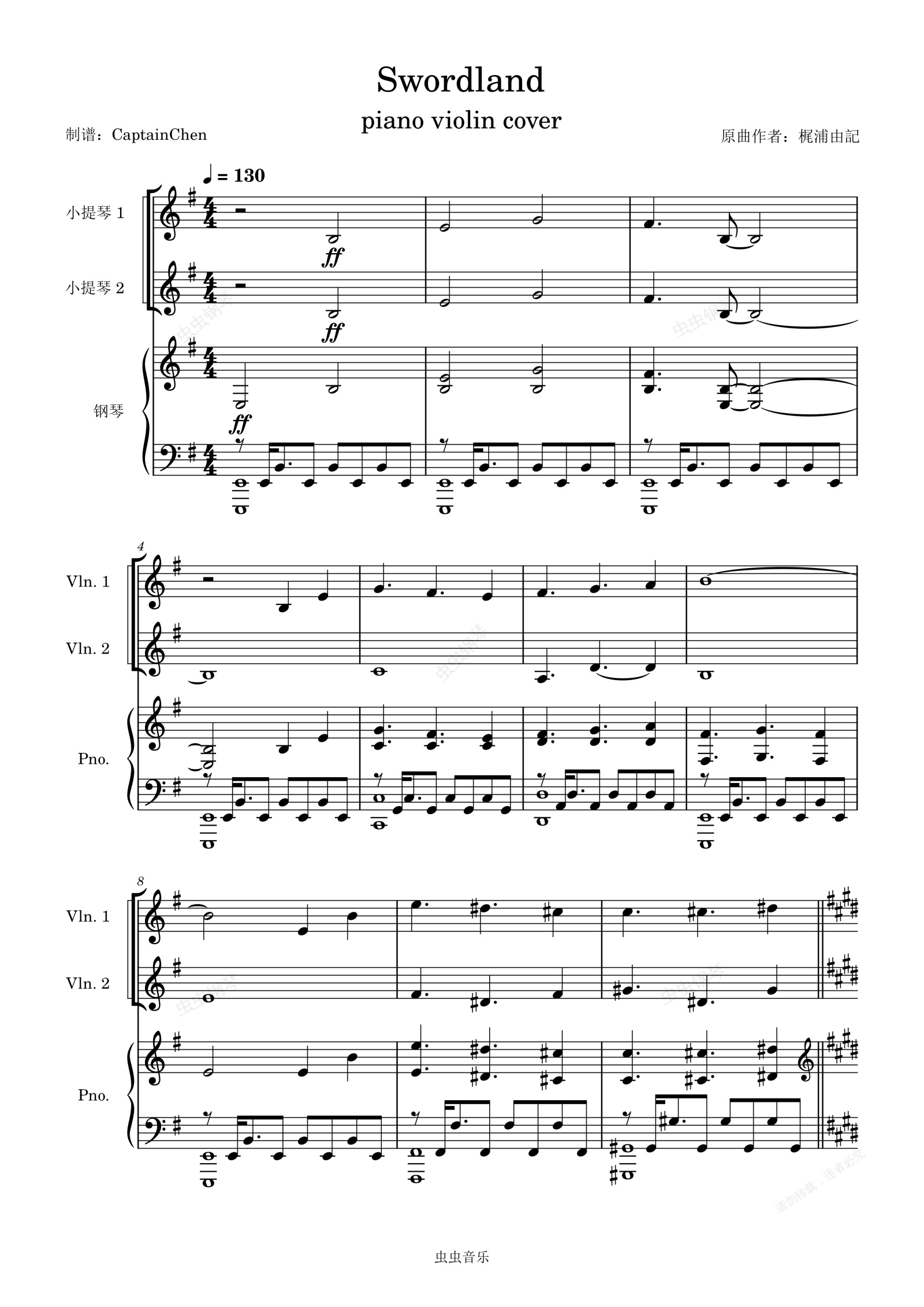 钢琴谱:Swordland 刀剑神域主题曲 钢琴+小提琴二重奏