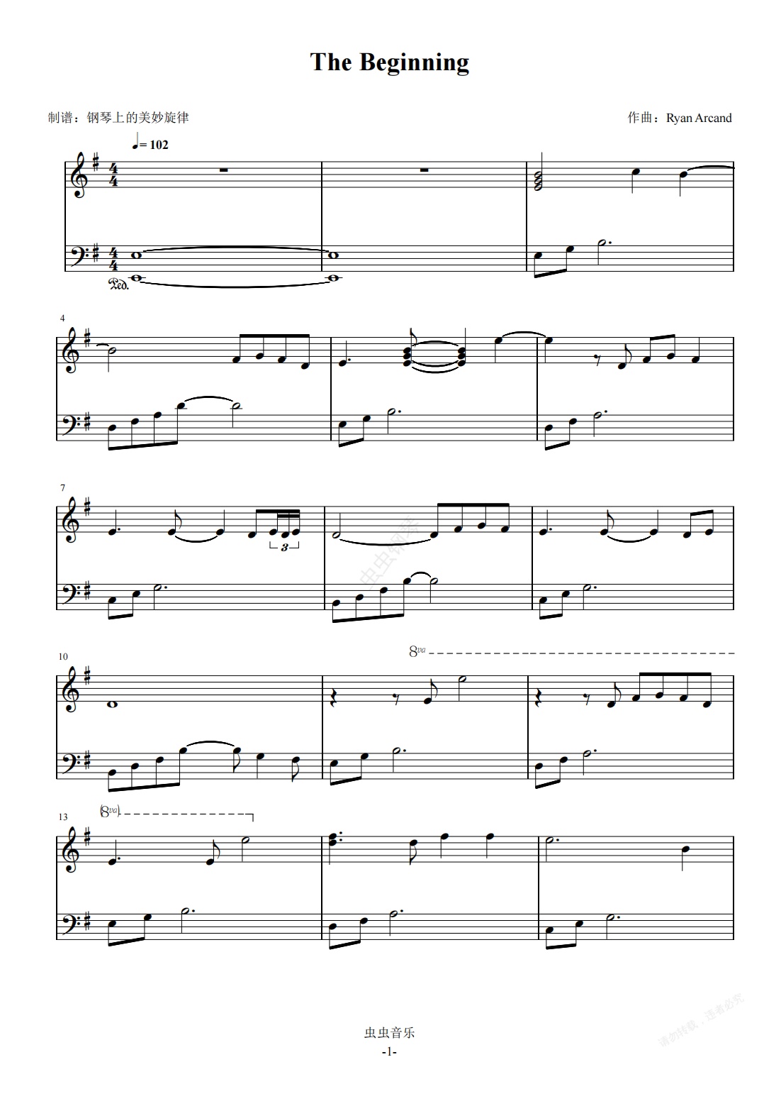 钢琴谱:The Beginning 简易版 加拿大流浪汉Ryan自编钢琴曲