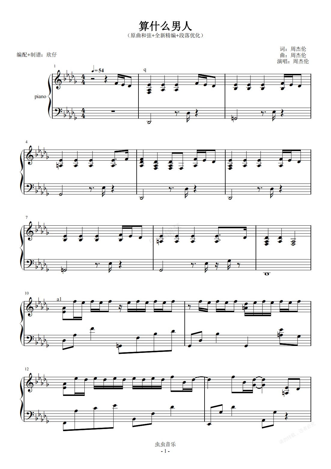 钢琴谱:周杰伦-升C《算什么男人》(全新精编+段落优化)