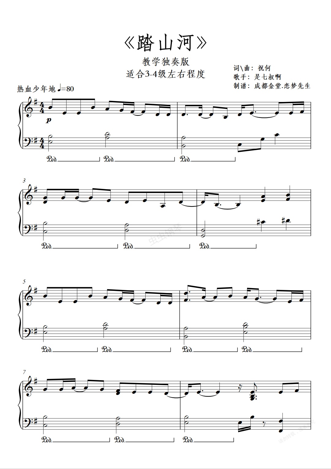 钢琴谱:《踏山河》教学独奏版-适合3-4级程度