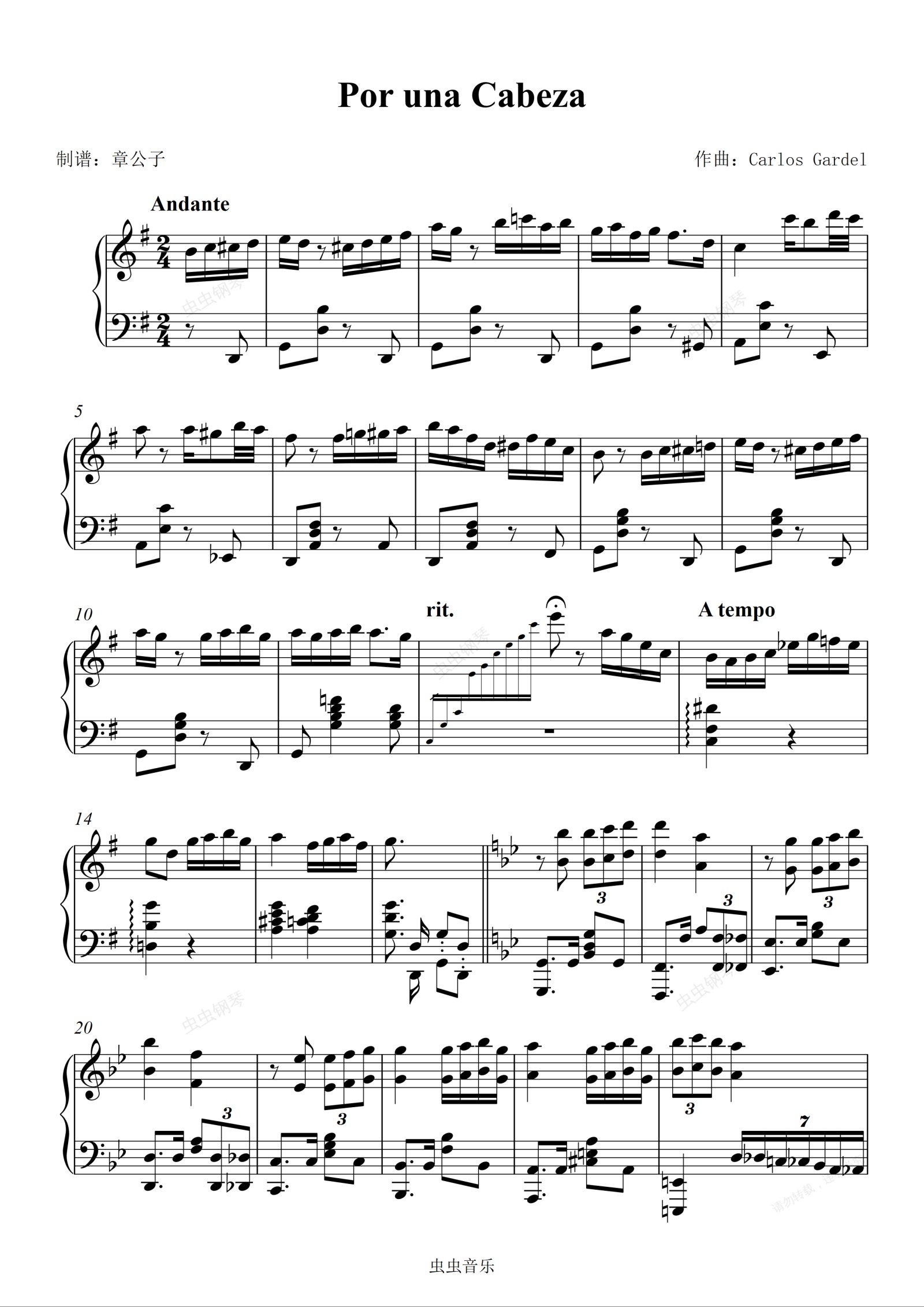 《Por Una Cabeza》一步之遥 独奏谱 - 章公子扒谱自BiBiPiano