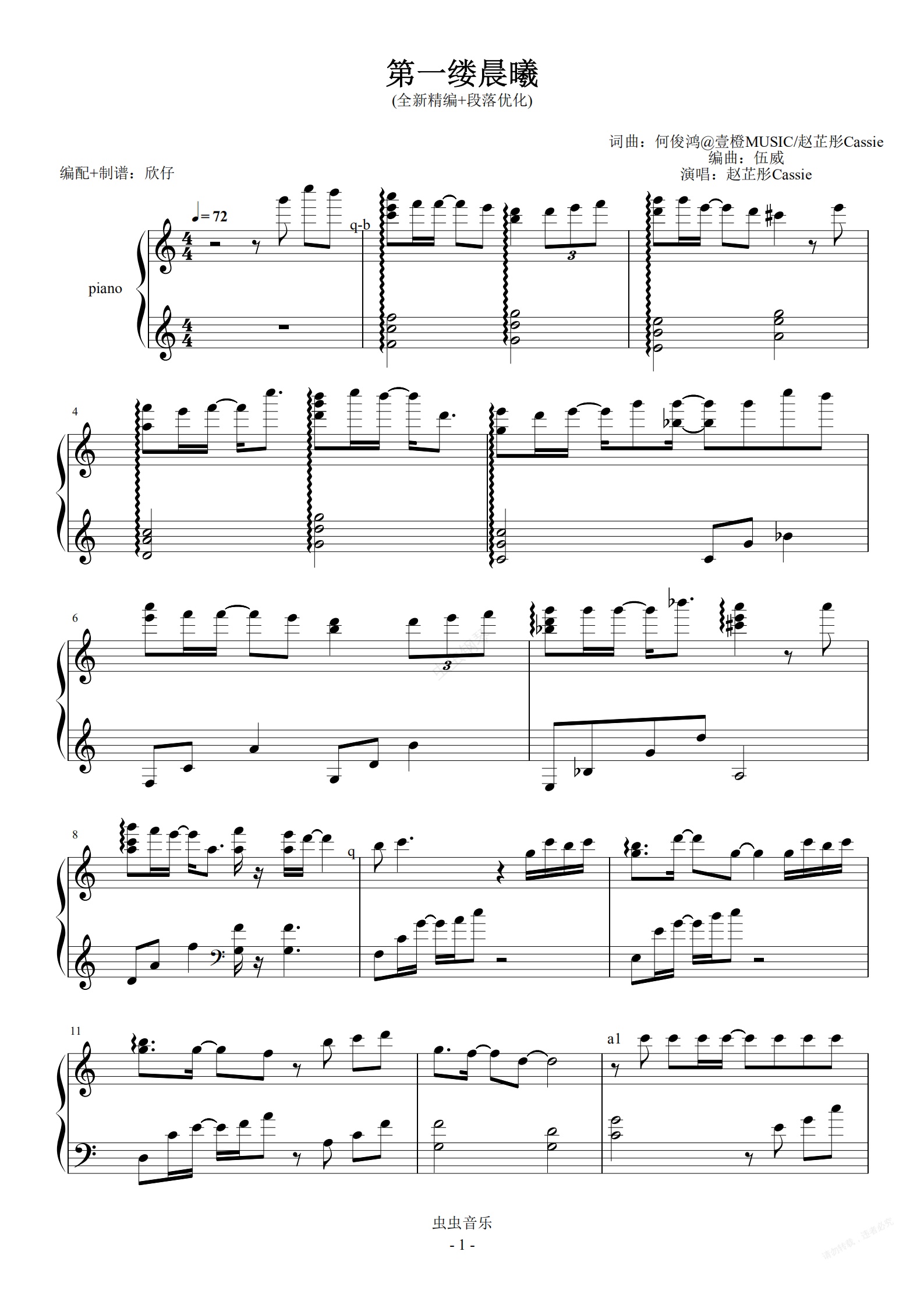 钢琴谱:赵芷彤-C《第一缕晨曦》(全新精编+段落优化)