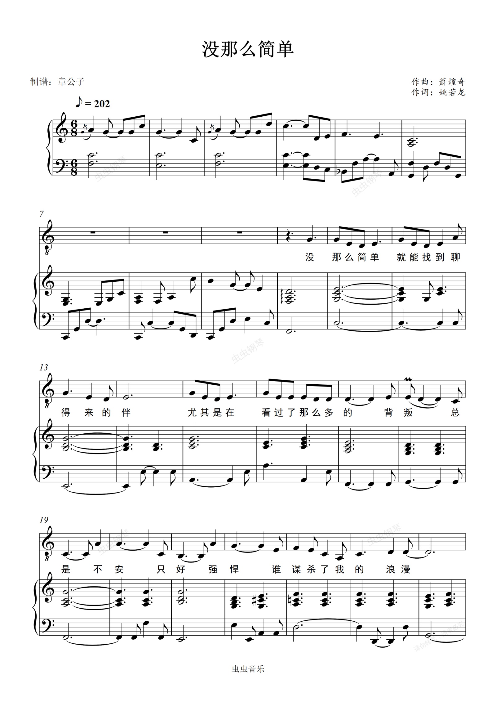 钢琴谱:《没那么简单》- 黄小琥 男声C调版 弹唱谱