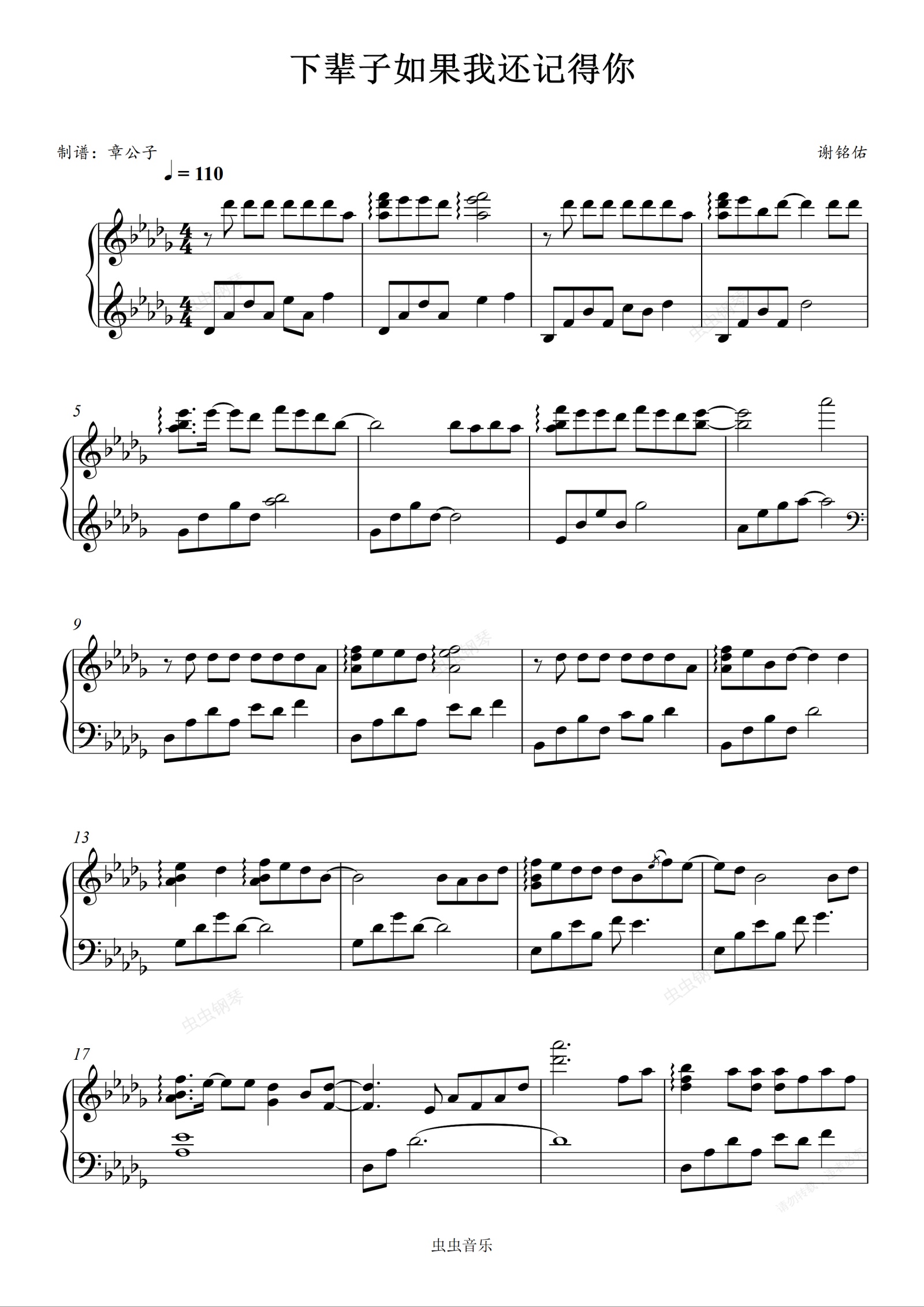 钢琴谱:《下辈子如果我还记得你》独奏谱 昼夜版 章公子扒谱