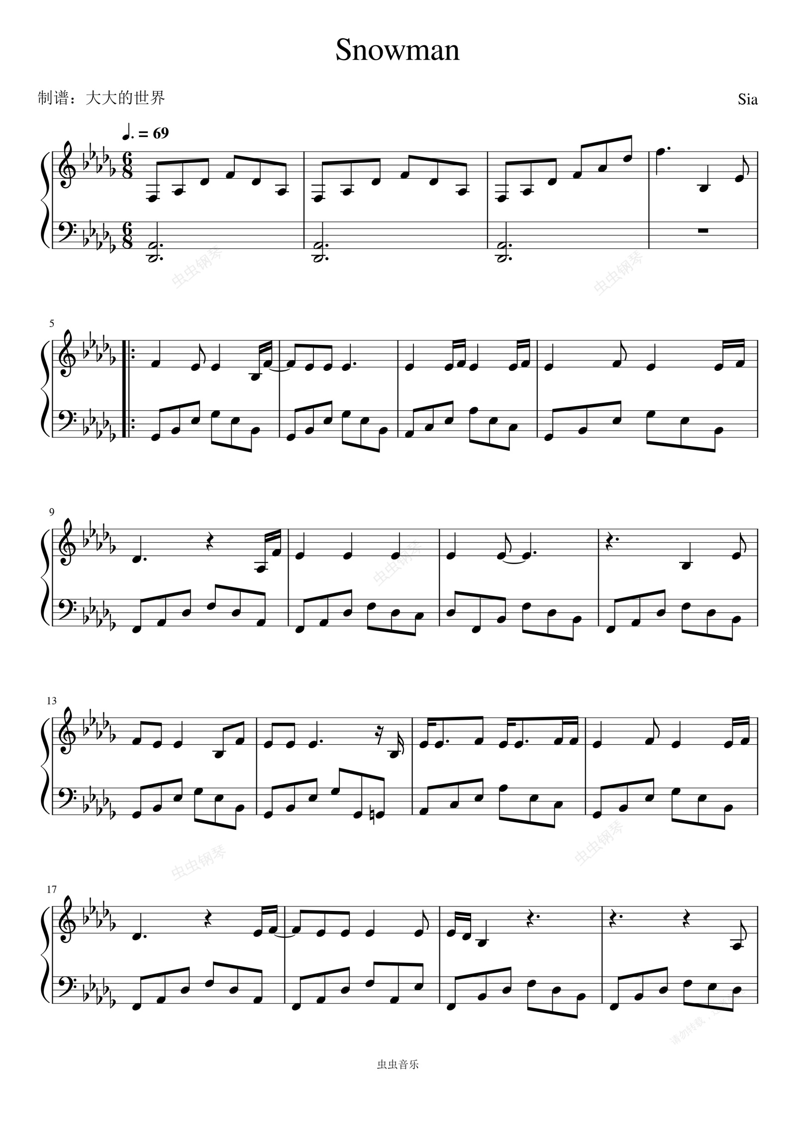 钢琴谱:Snowman(Sia)