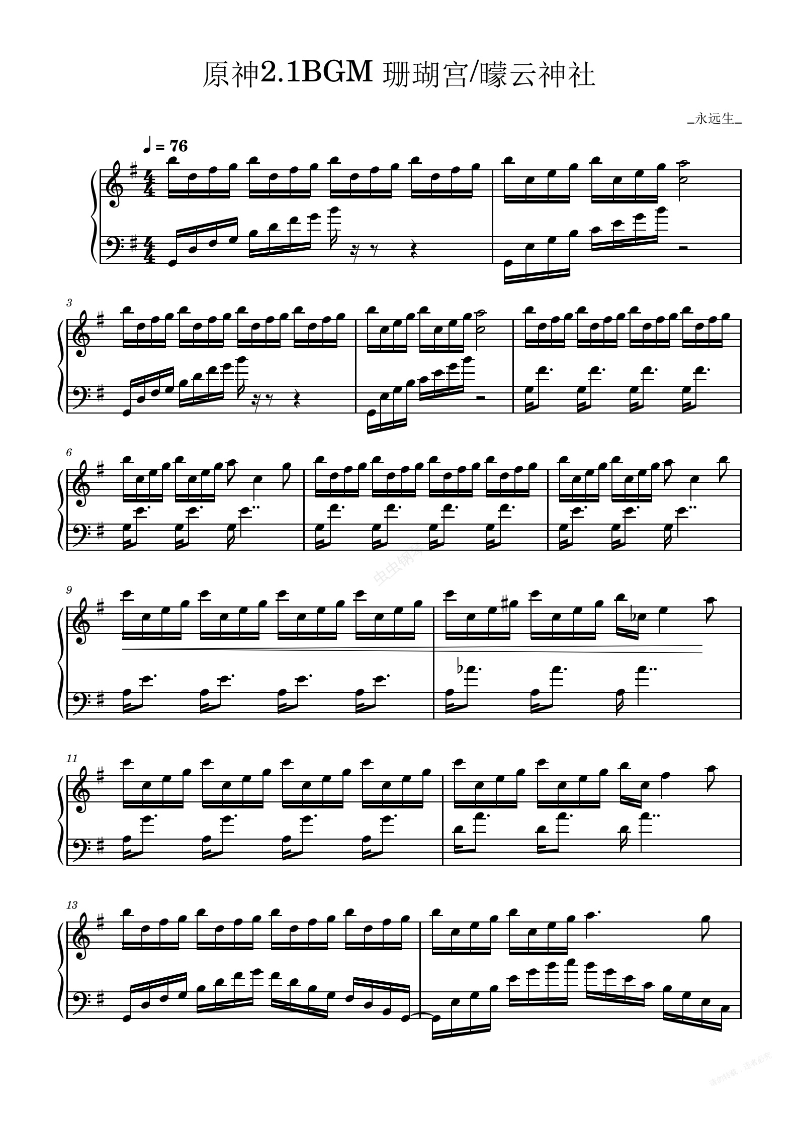 钢琴谱:原神2.1BGM 珊瑚宫/曚云神社—永远生