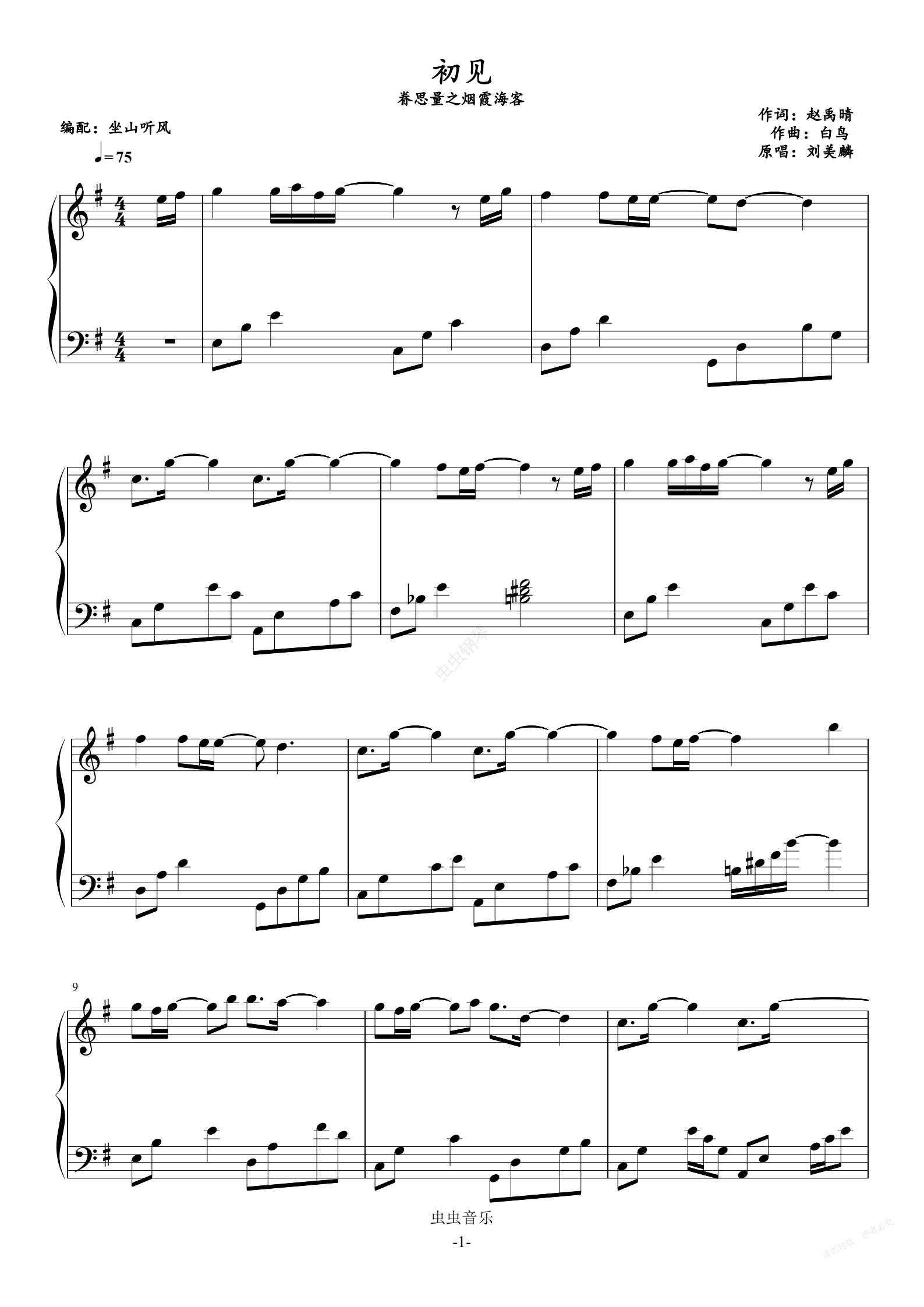 钢琴谱:初见——《眷思量之烟霞海客》片尾曲
