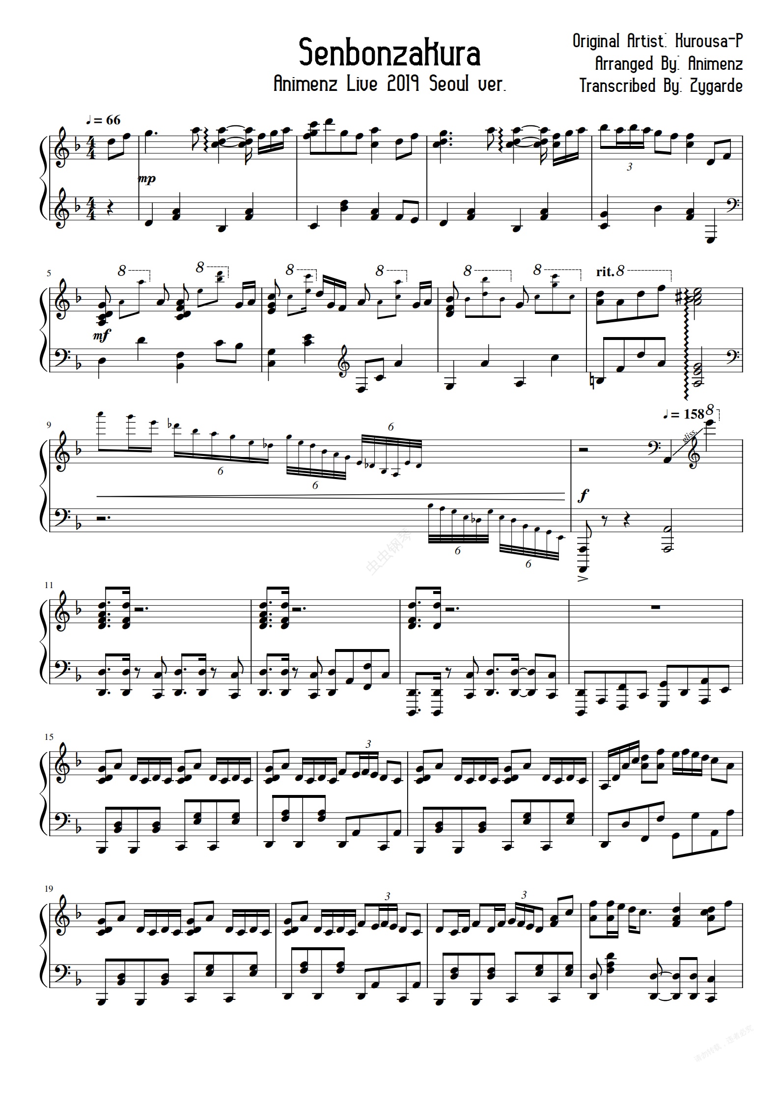 Animenz,【免费谱】 - 千本樱(Piano and Violin Duet)