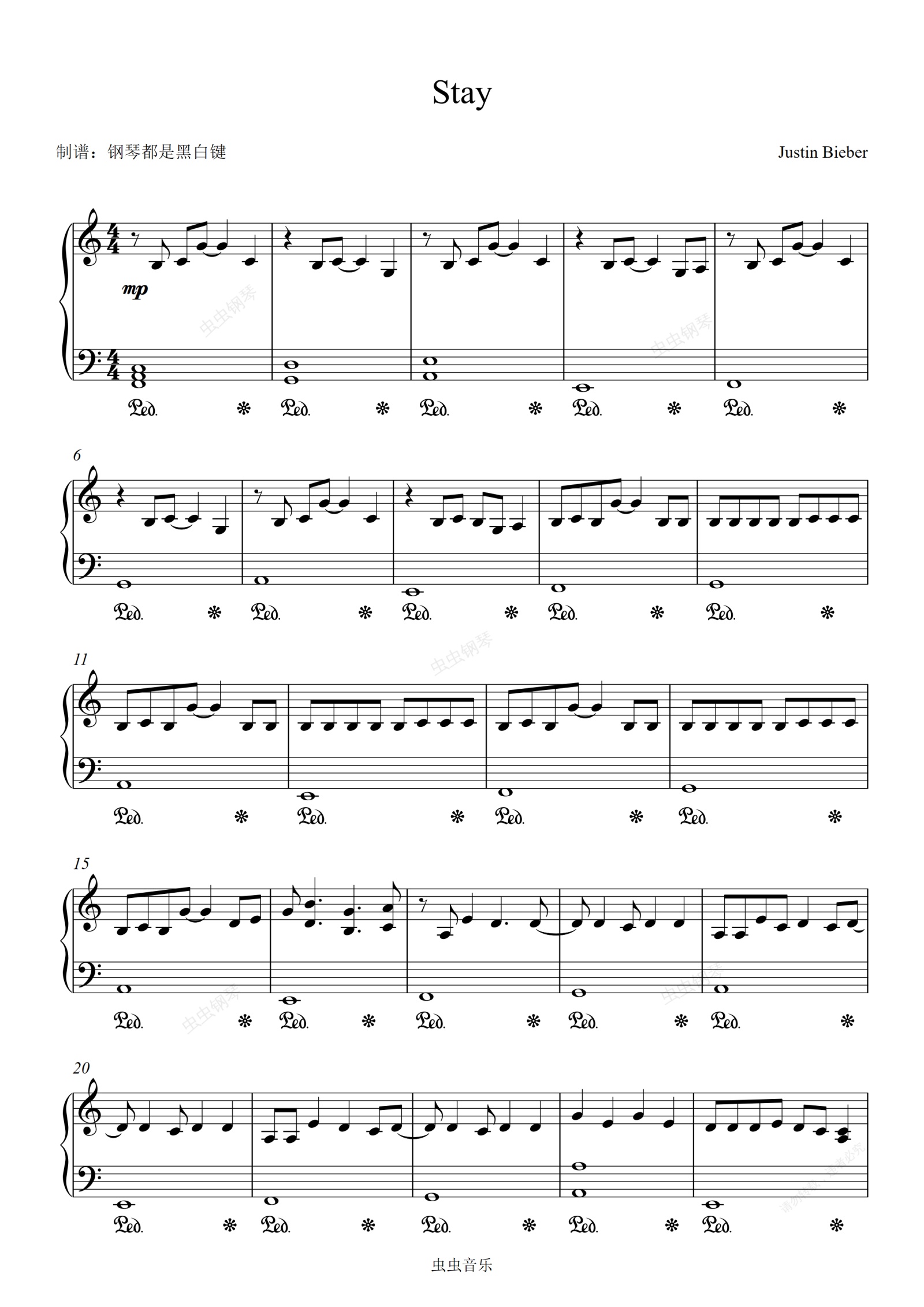 钢琴谱:油王神曲-Stay【最近爆火歌曲】