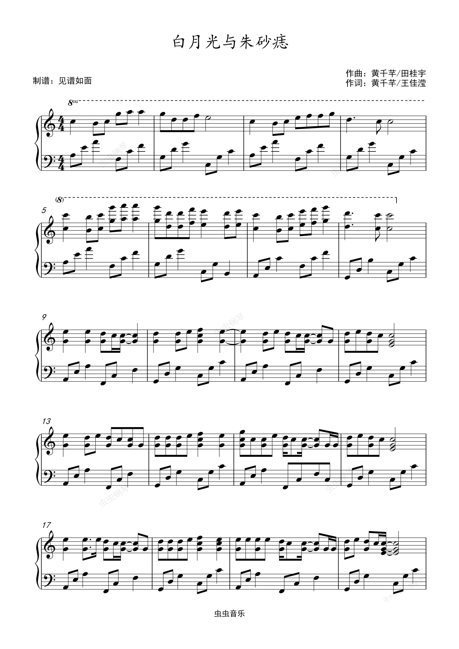 钢琴谱:大籽 - 白月光与朱砂痣【C调进阶】
