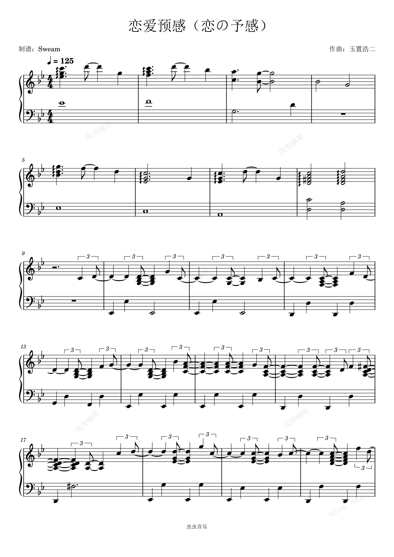 钢琴谱:恋爱预感(恋の予感)-原调改编版