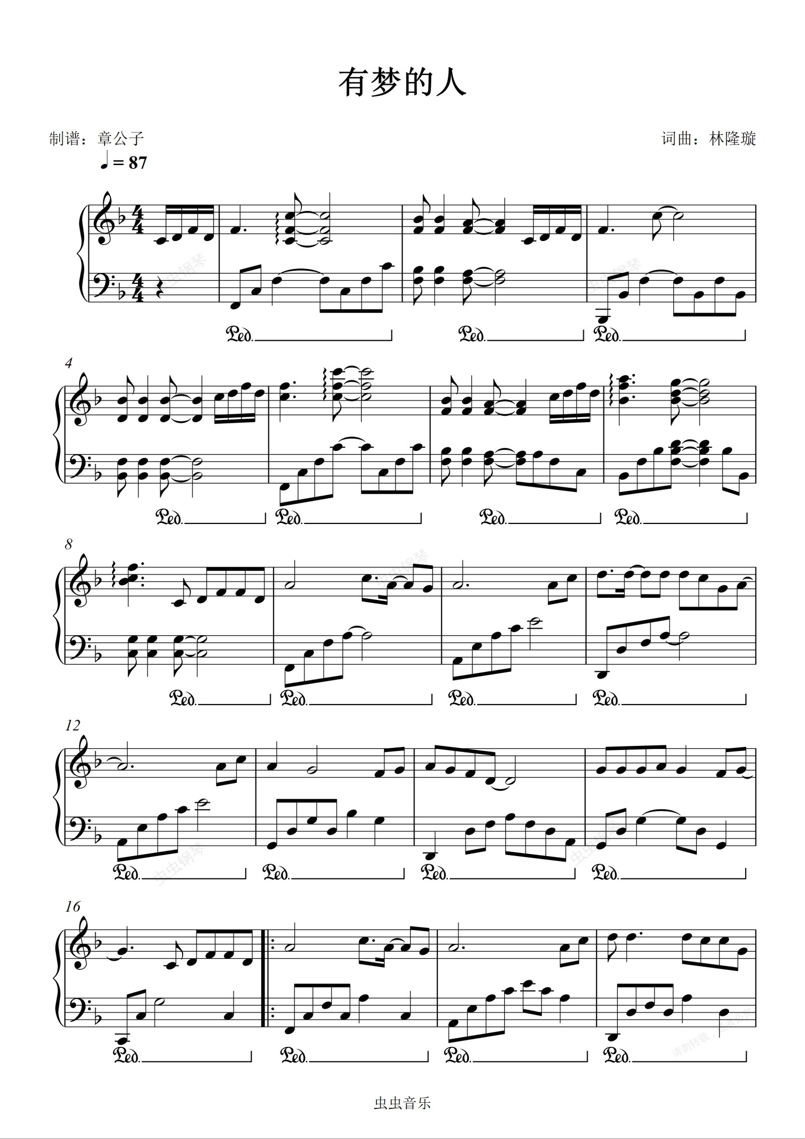 钢琴谱:《有梦的人》- 任贤齐 独奏谱
