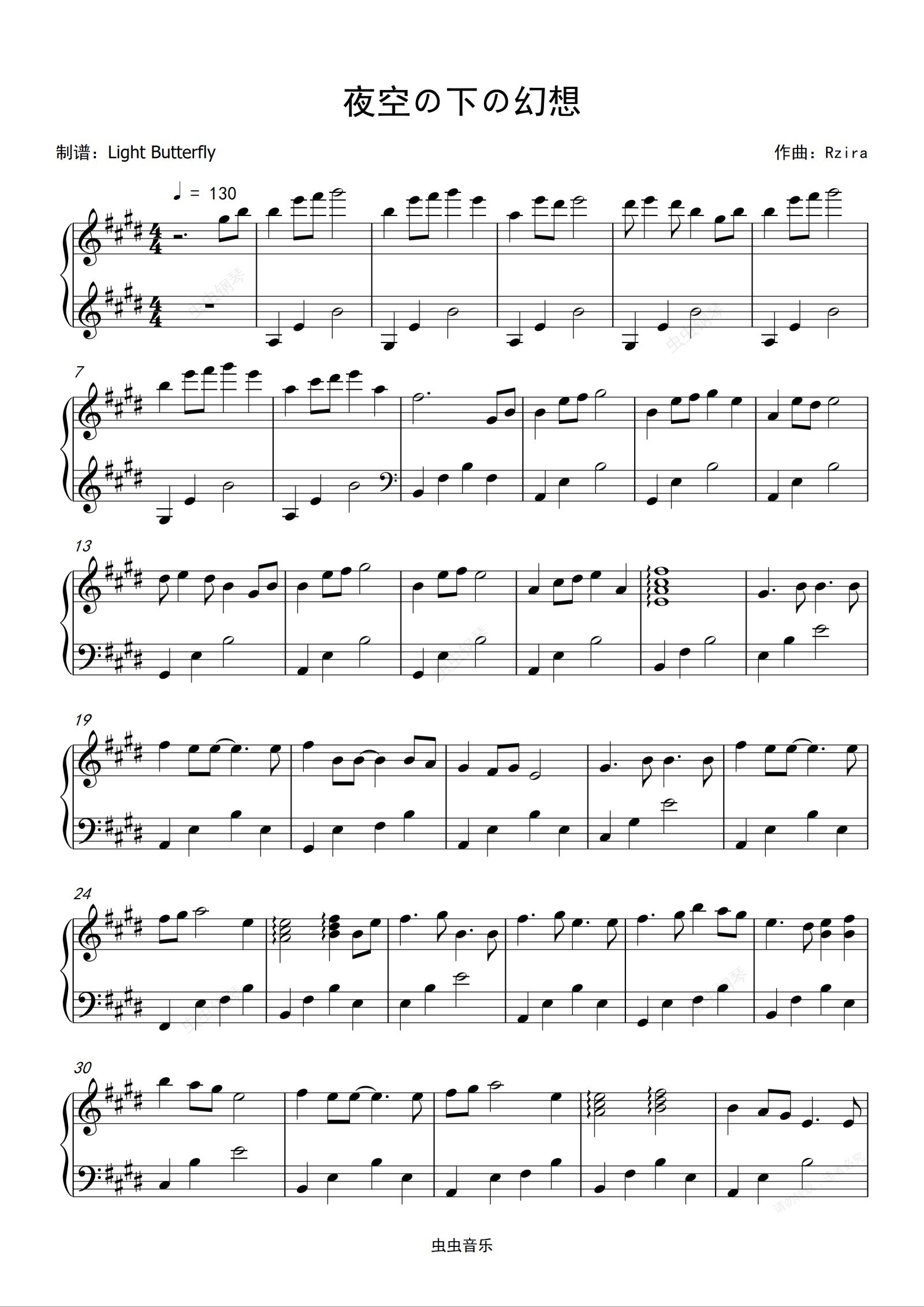 钢琴谱:夜空の下の幻想