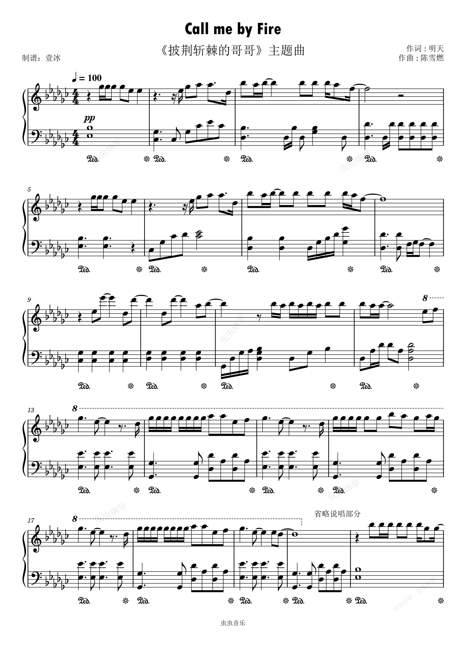 钢琴谱:Call me by Fire//《披荆斩棘的哥哥》主题曲-原调