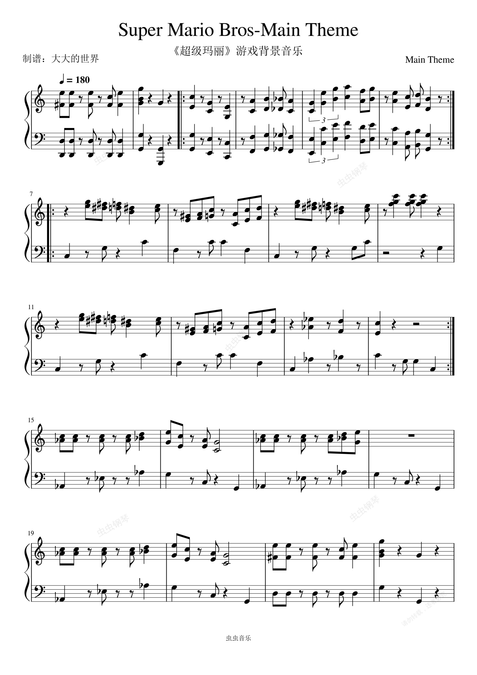 钢琴谱:Super Mario Bros-Main Theme-超级玛丽