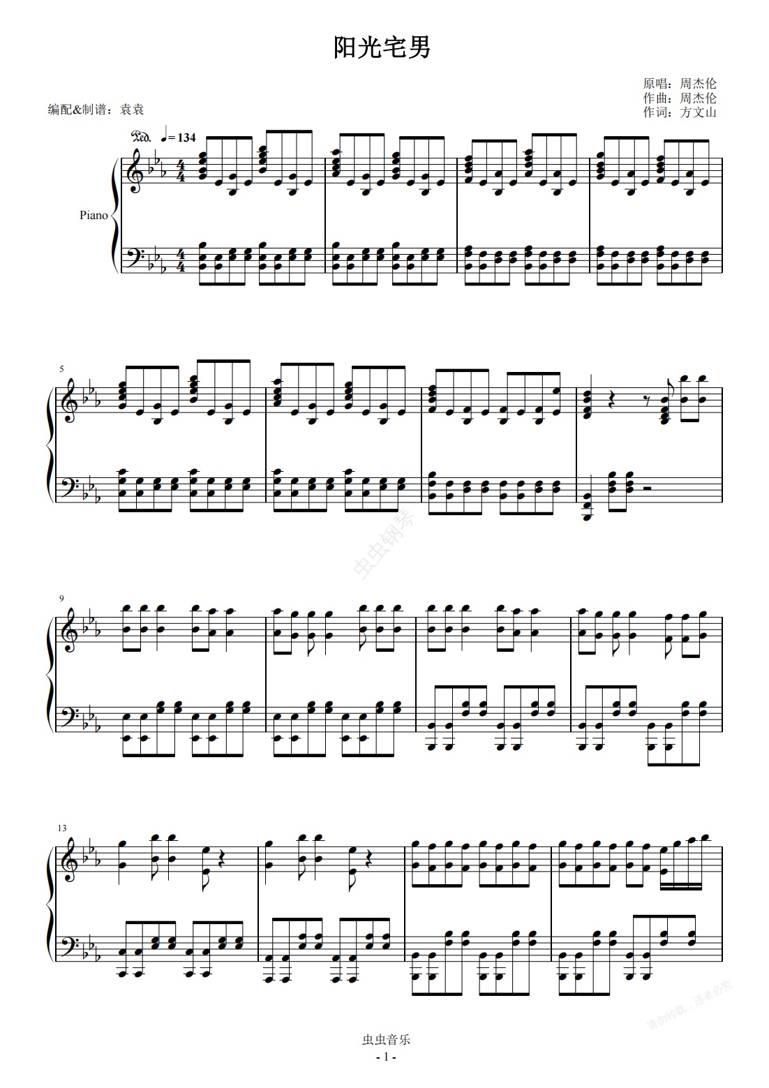 钢琴谱:阳光宅男 激情演奏版