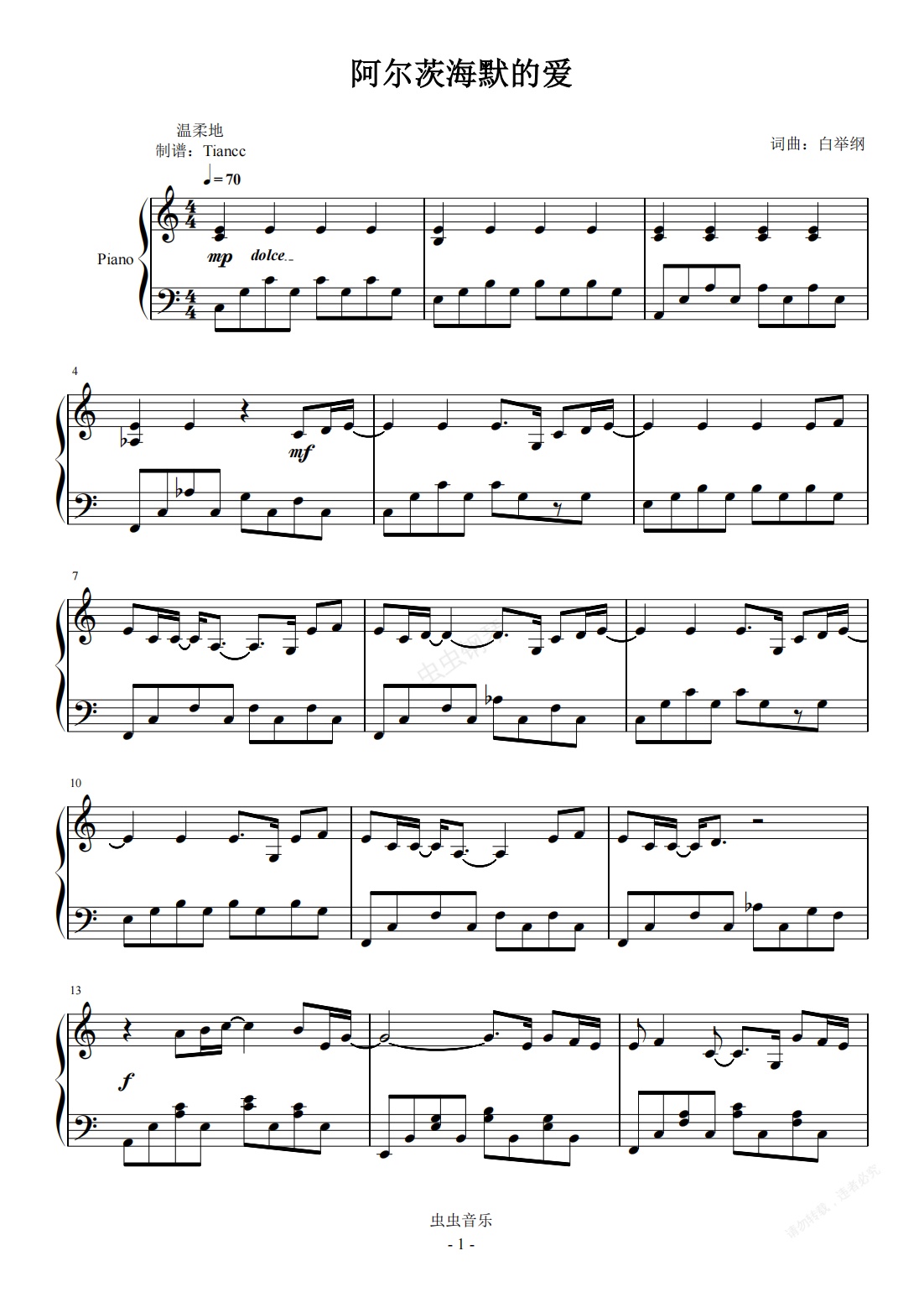 钢琴谱:《阿尔茨海默的爱》温柔深情,599难度