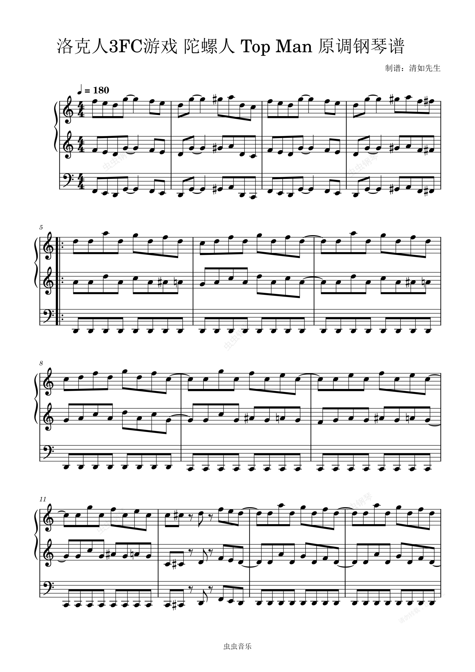 FC洛克人3陀螺人RockMan3 Top Man原调钢琴谱