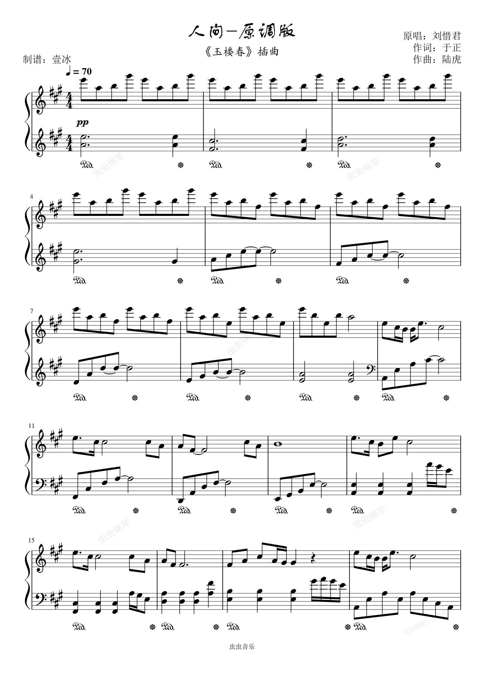 钢琴谱:人间//《玉楼春》插曲-原调版