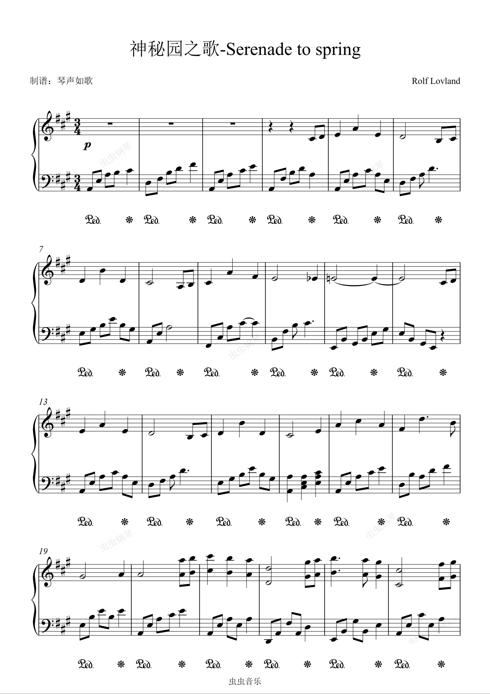 钢琴谱:神秘园之歌-Serenade to spring 【好听到爆炸纯音乐】