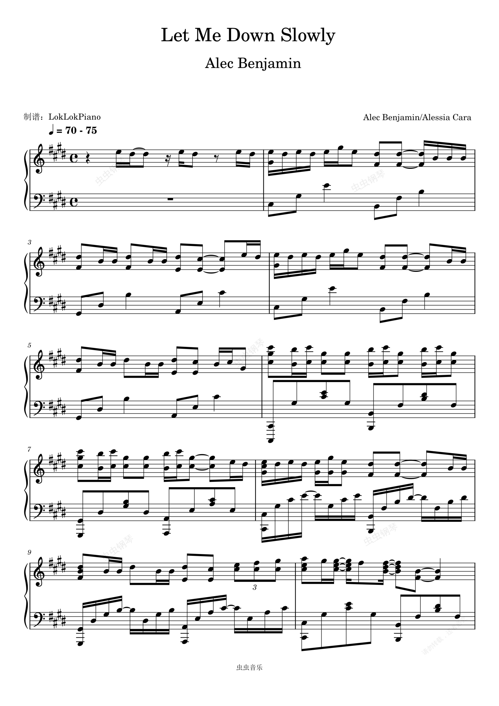 钢琴谱:Let Me Down Slowly | LokLok Piano演奏版