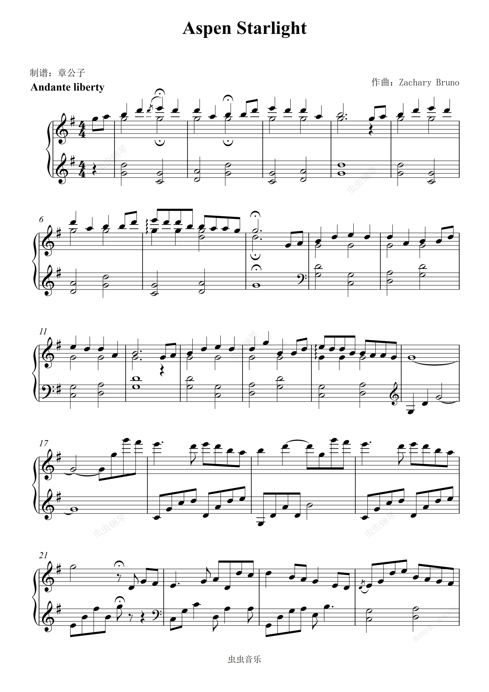 钢琴谱:《Aspen Starlight》- Zachary Bruno 钢琴谱