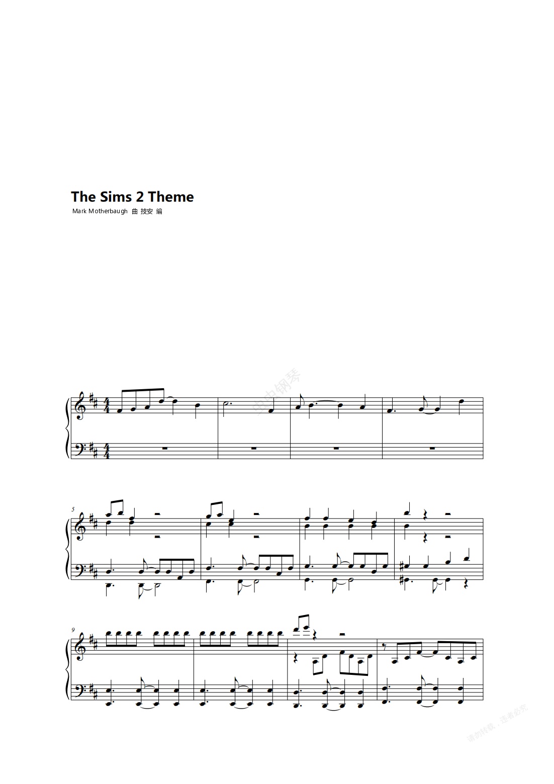 钢琴谱:《模拟人生2 The Sims 2》主题曲钢琴独奏版(高还原度)