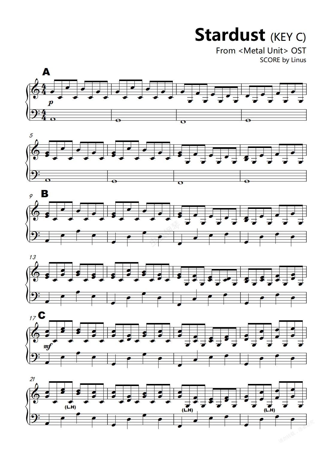 钢琴谱:【Stardust / 星尘】C调版 (Metal Unit OST)