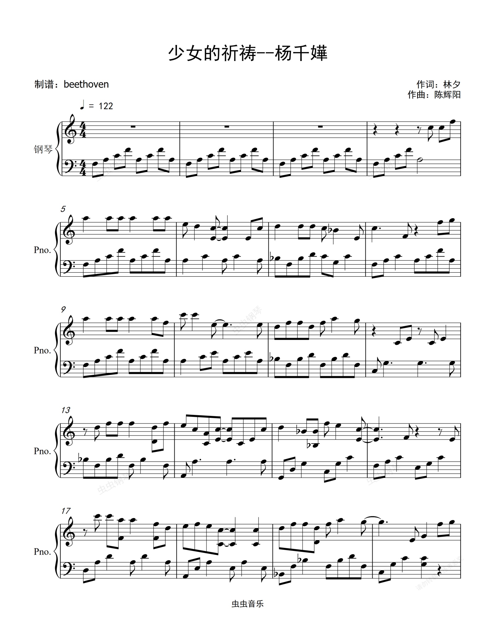 钢琴谱:少女的祈祷_杨千嬅_钢琴原版