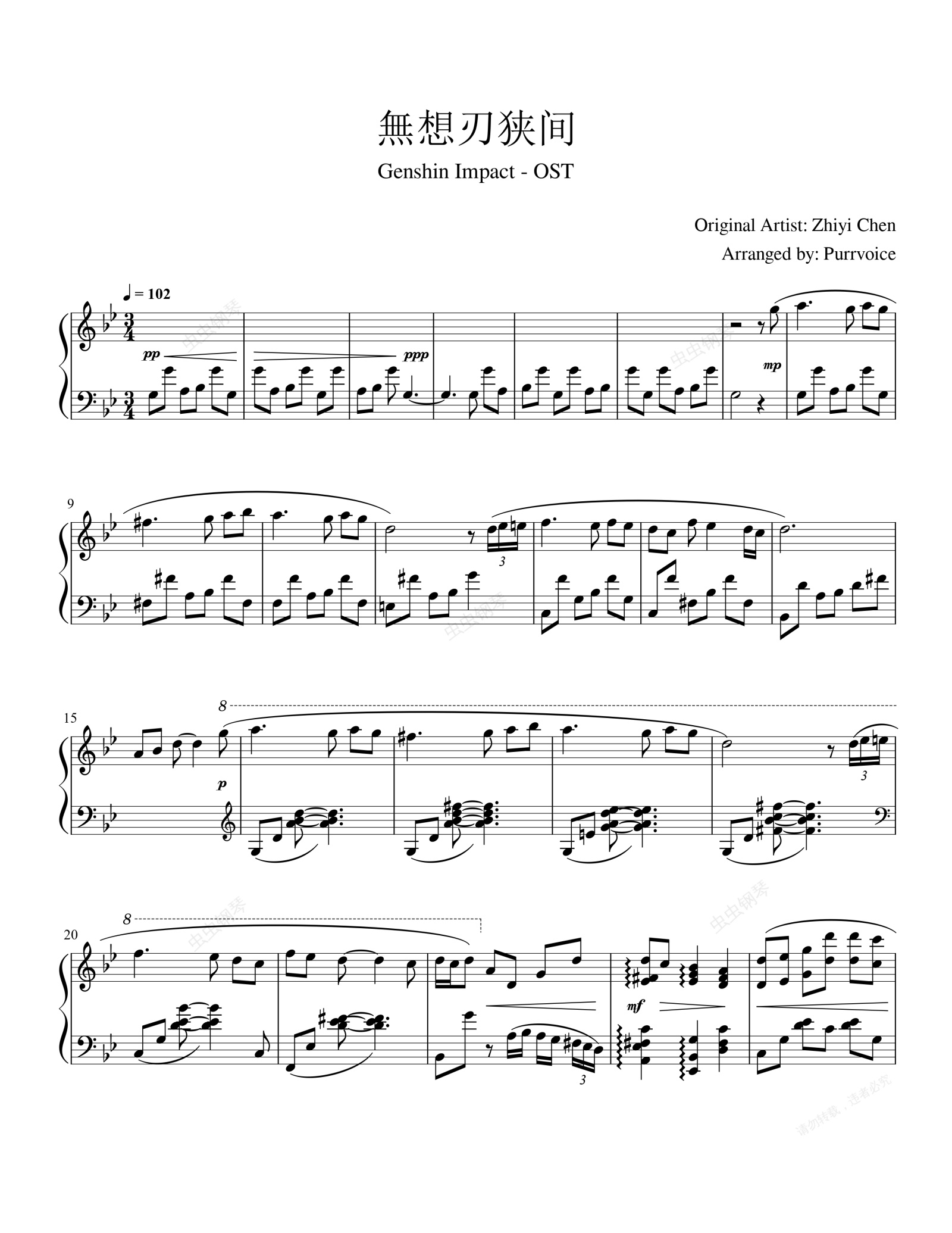 钢琴谱:【原神/钢琴】无想刃狭间  凄美背景音乐改编