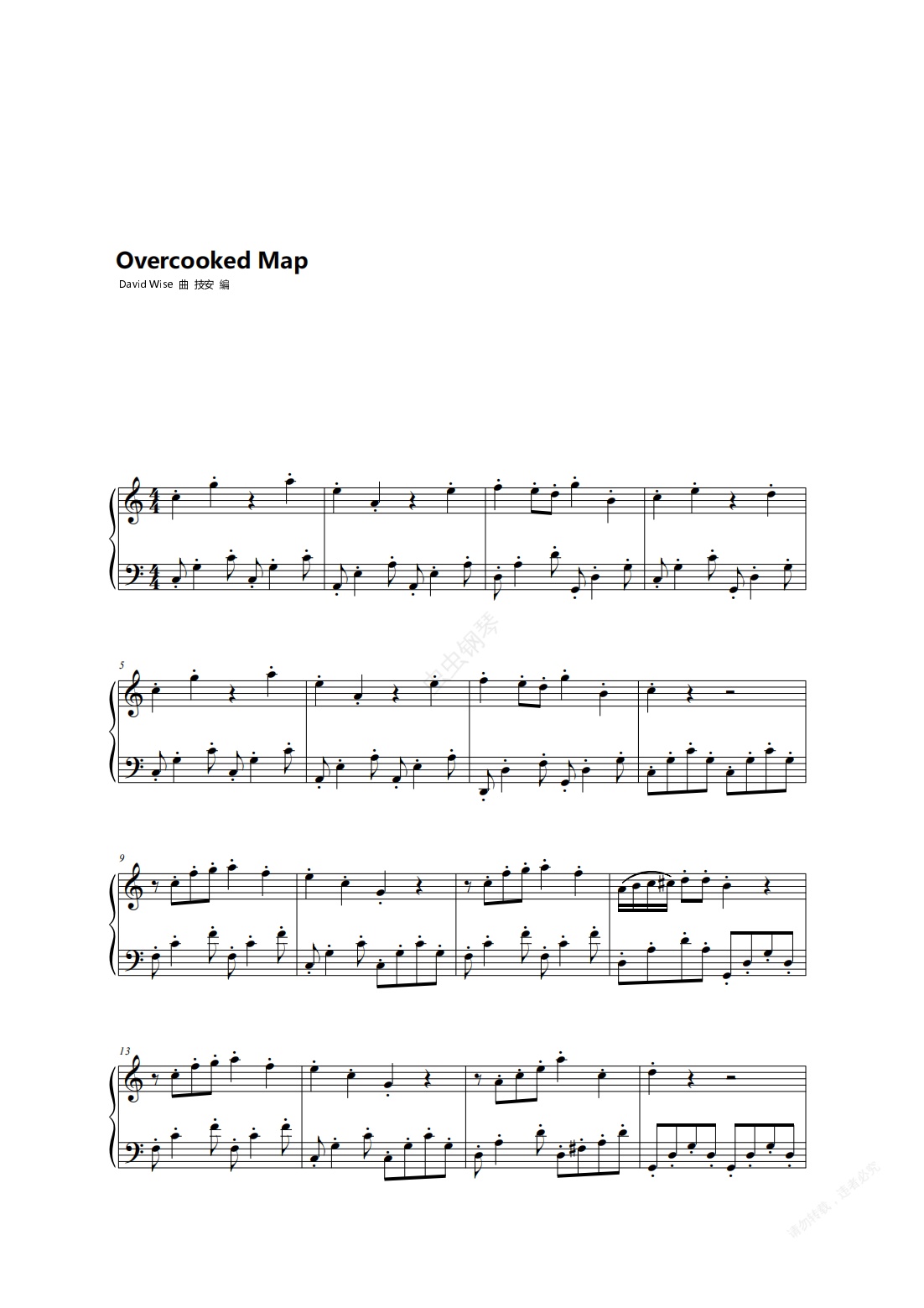 钢琴谱:《分手厨房 Overcooked》胡闹厨房(煮糊了)地图选择页面音乐,钢琴演奏版