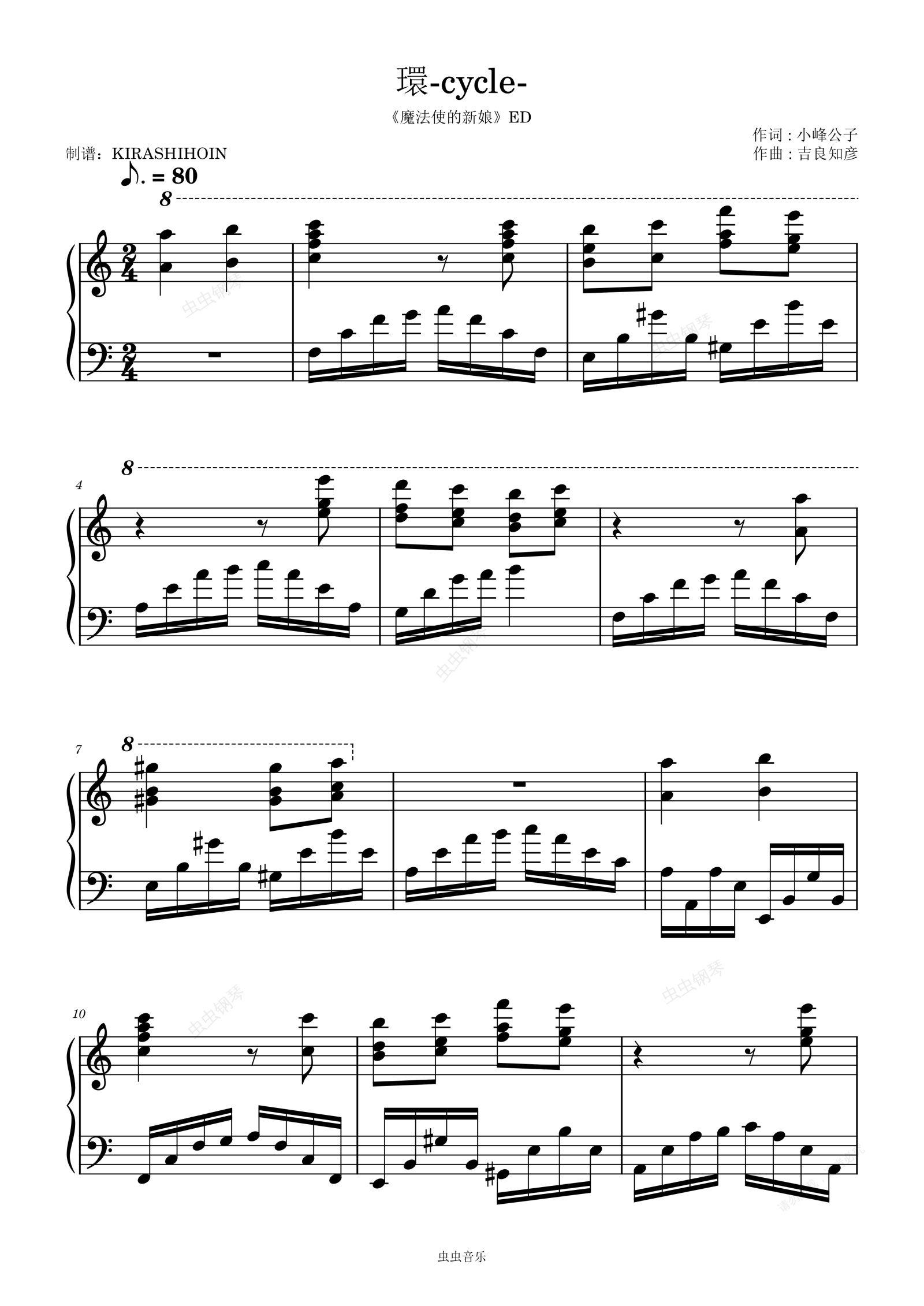 钢琴谱:環-cycle-(《魔法使的新娘》ED)- 糸奇はな