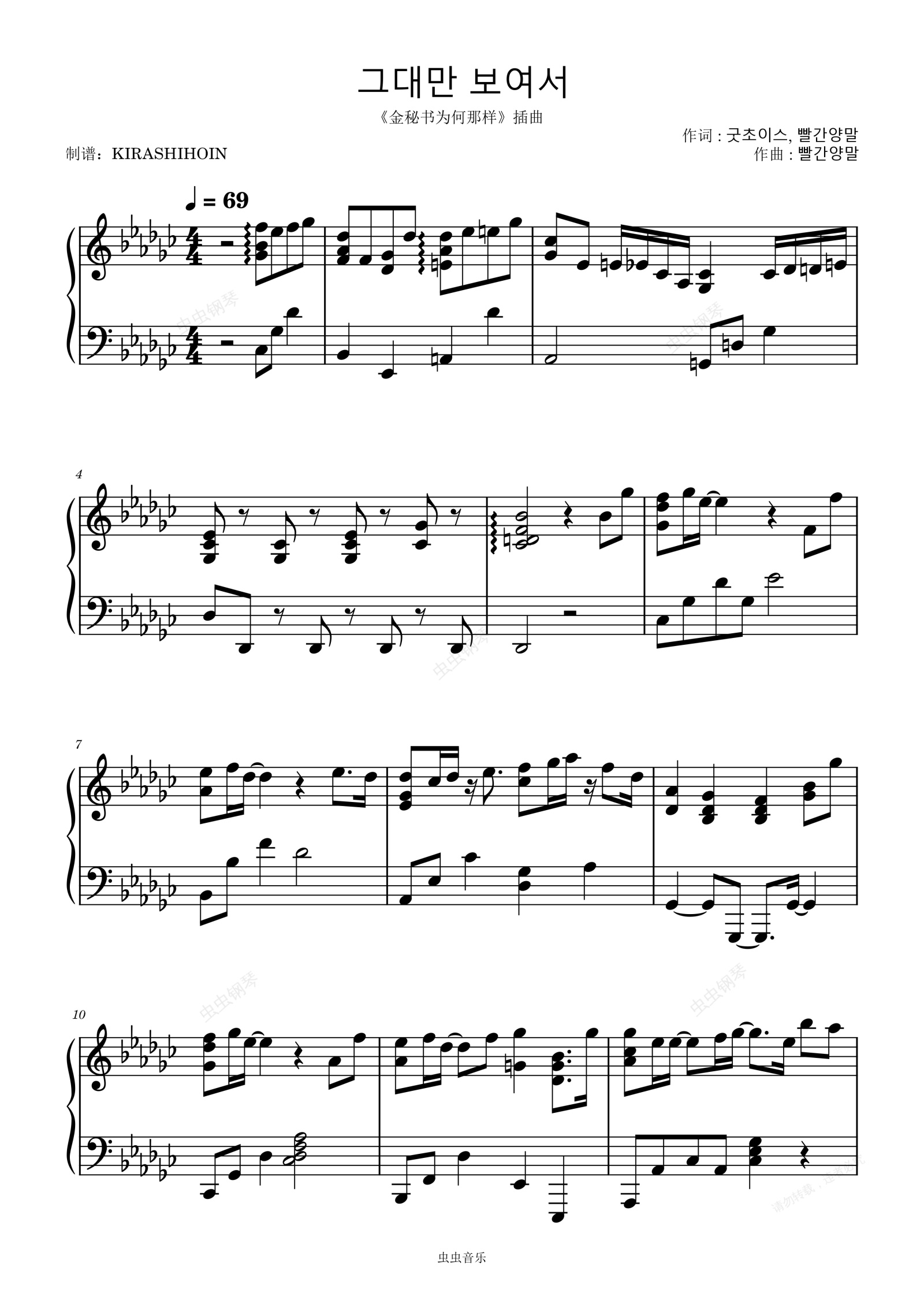 钢琴谱:Because I only see you/그대만 보여서(《金秘书为何那样》插曲)