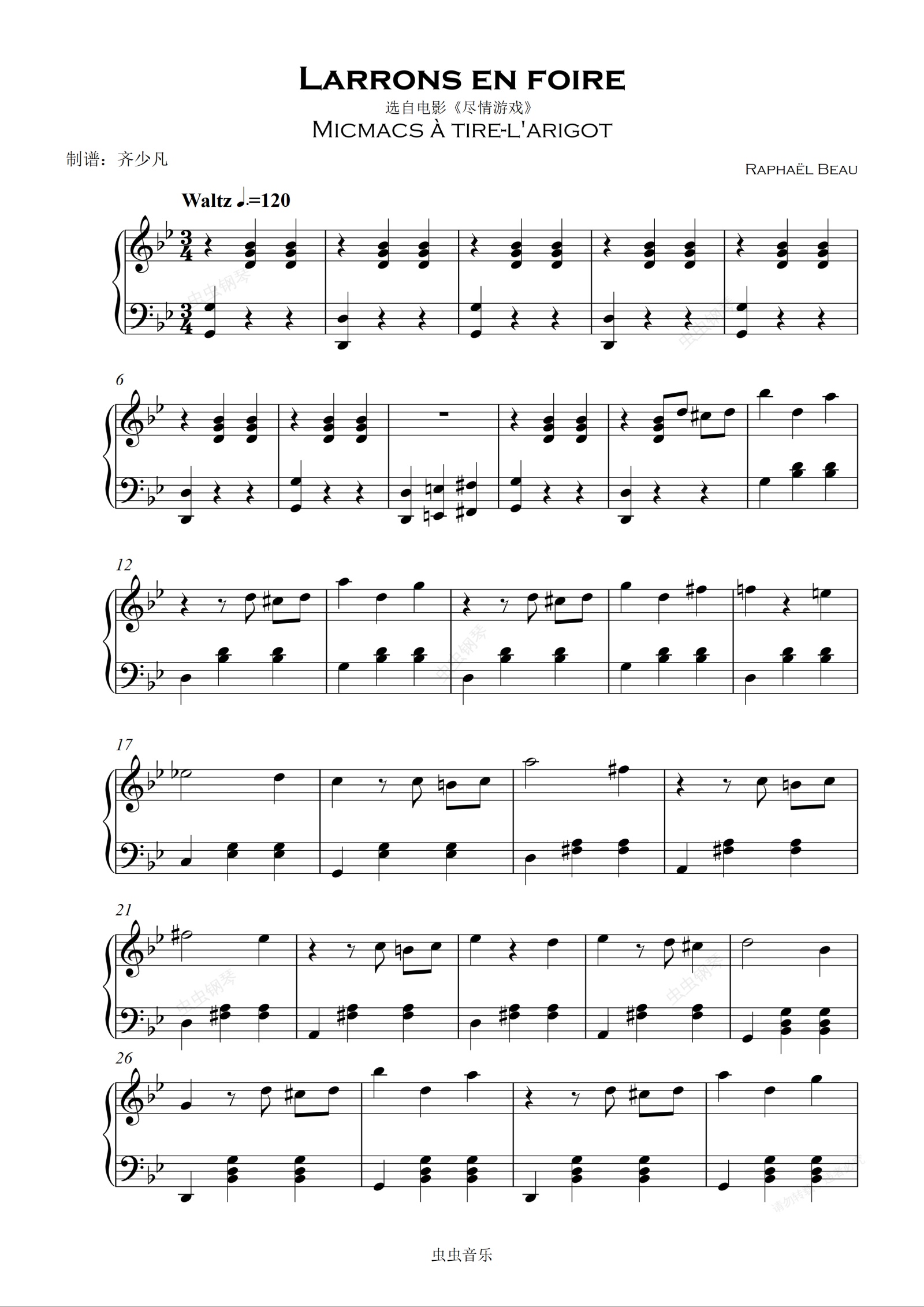 钢琴谱:Larrons En Foire《尽情游戏》插曲