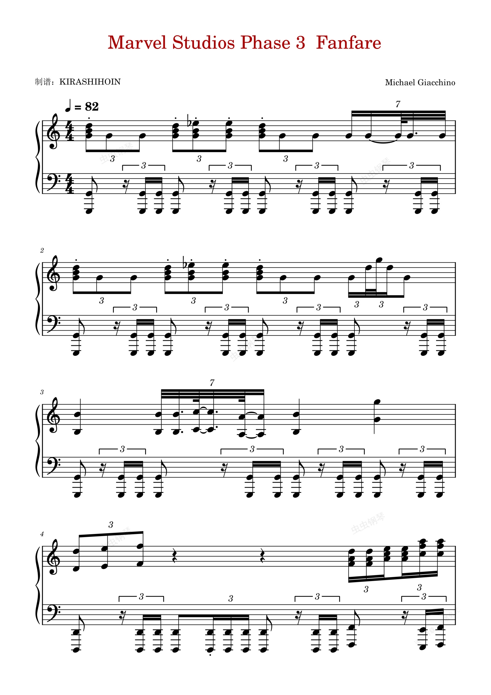 钢琴谱:漫威电影宇宙第三阶段开场曲/Marvel Studios Phase 3  Fanfare