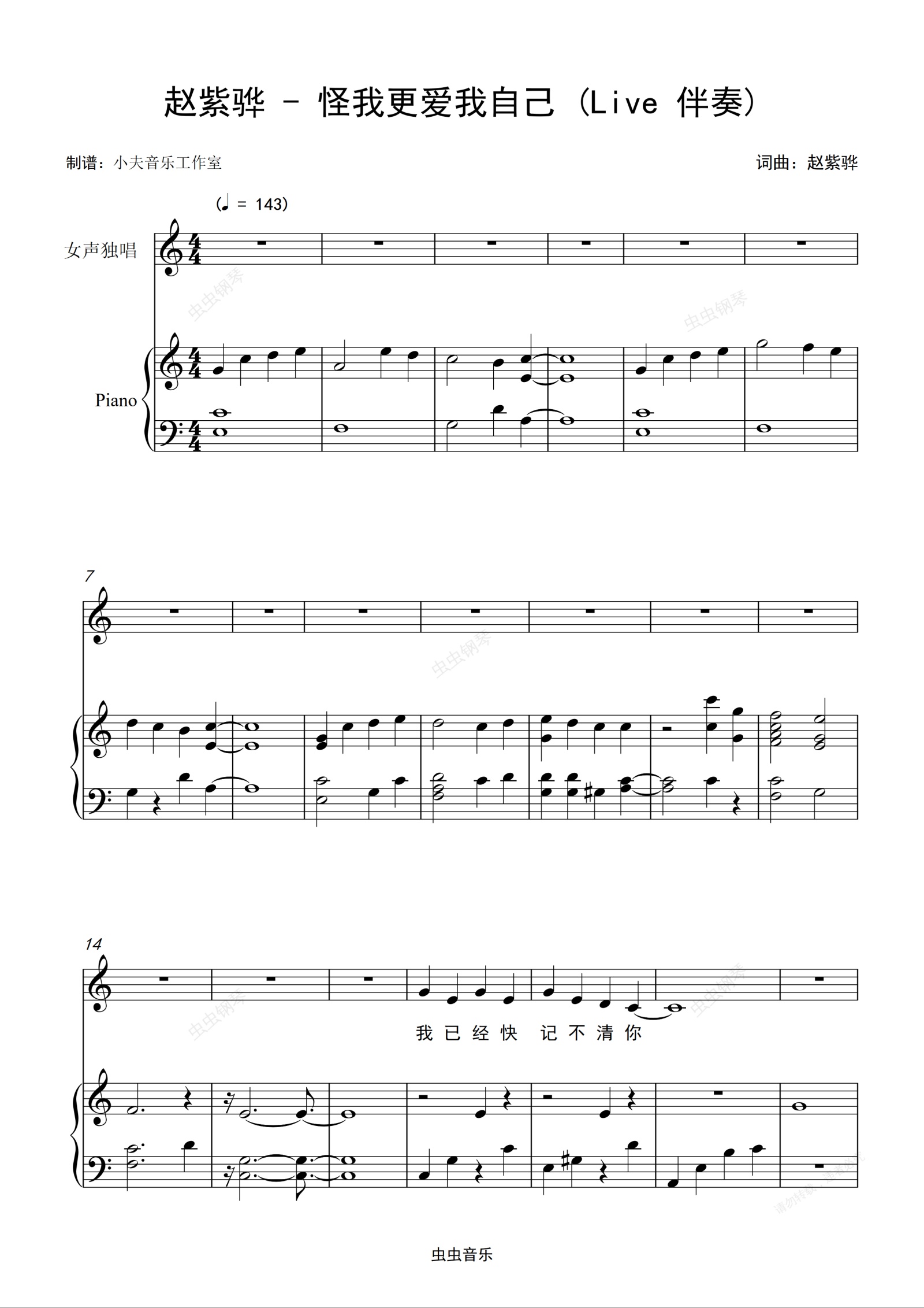 钢琴谱:怪我更爱我自己 (Live C调版扒带改编钢琴版伴奏)